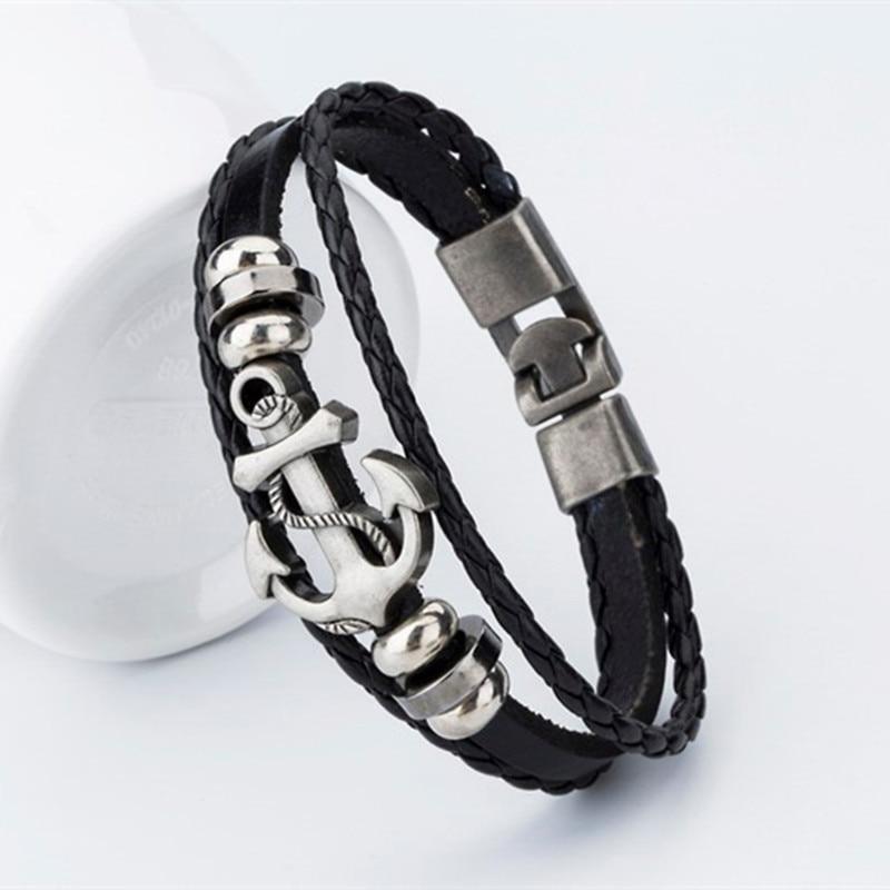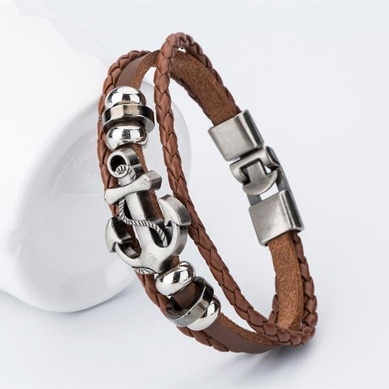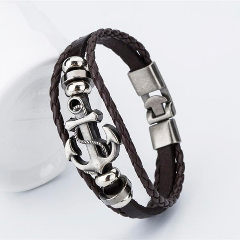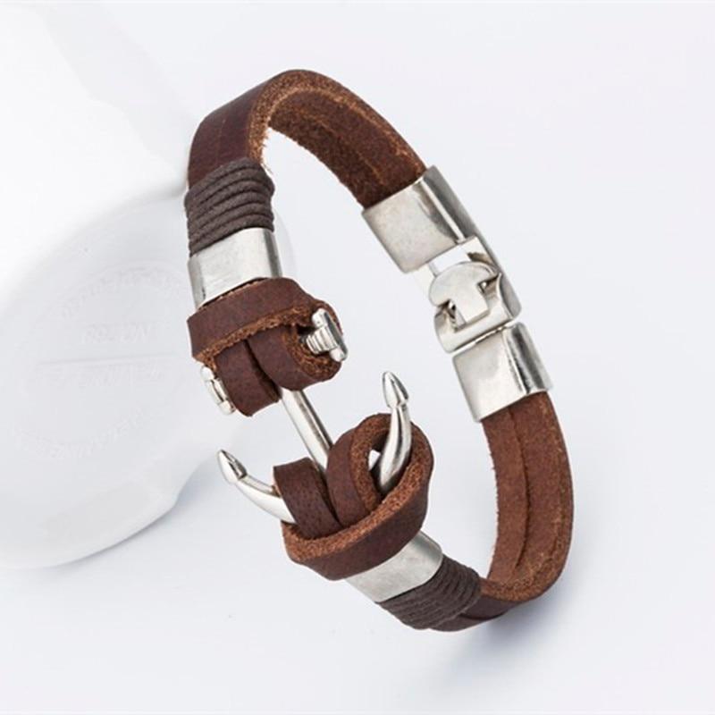 Endless August New Pirate Style Alloy Stainless Steel Anchor Bracelet For Men Genuine Cow Leather Bracelet Jewelry Bangles