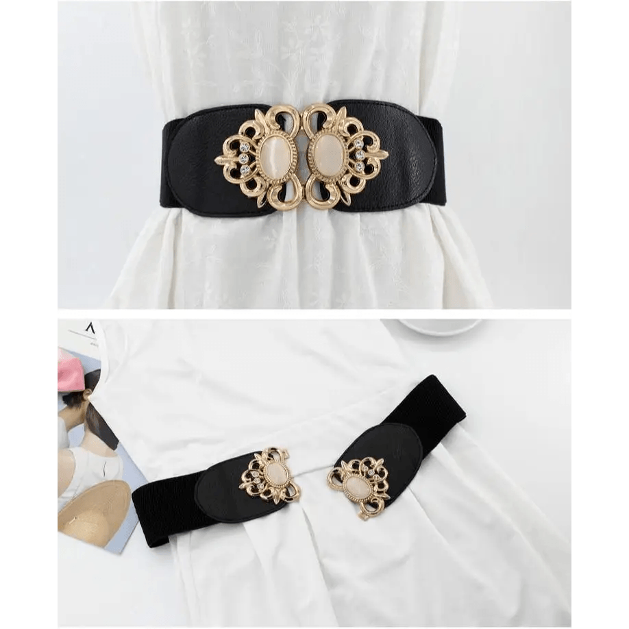 • ELEGANT LOOK-  the vintage design stretch dress belt will provide a chic presence to your look in seconds, accessorize and upgrade your look, cinch your waist for an hourglass figure, create a better body proportion