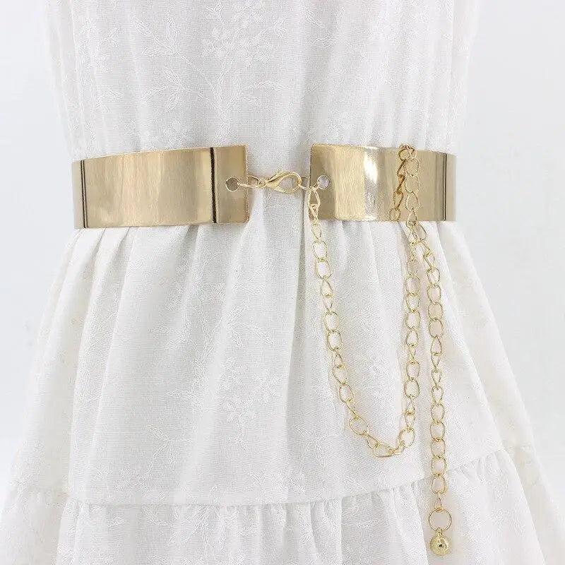 Shiny Women Metal Belt Luxurious Gold Dress Chain Belts Elegant Polished Adjustable Metal Mirror Waist Belt
