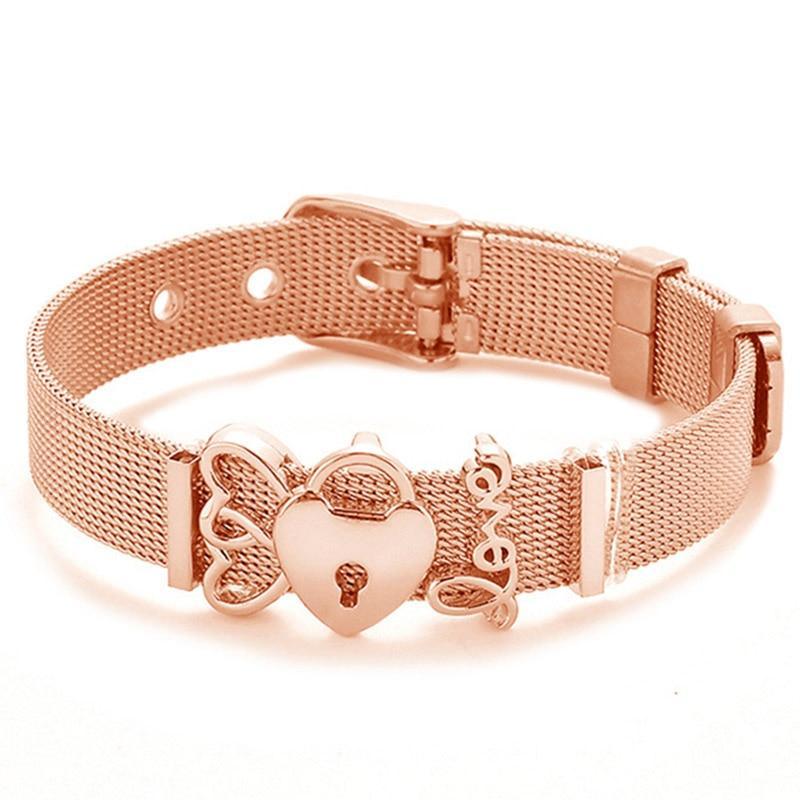 Fashion Stainless Steel Woman and Men Bracelet Mesh Bracelet Set Crystal Heart Anchor Charm Fine Bracelet Bangle For Female Lover