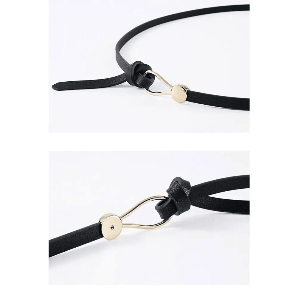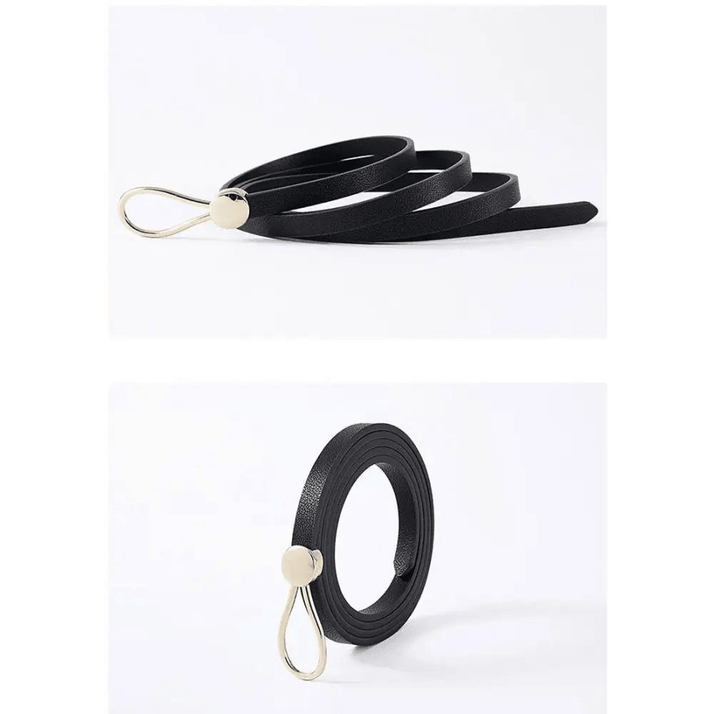 • MATERIAL AND FEATURE- The women skinny leather dress belt is made of PU leather and gold metal pin buckle, soft texture, high toughness, lightweight and waterproof, extremely comfortable to wear. It is a great match for jeans dress and any other outfits in your closet. With this skinny leather thin waist belt will make your boring wardrobe come alive.