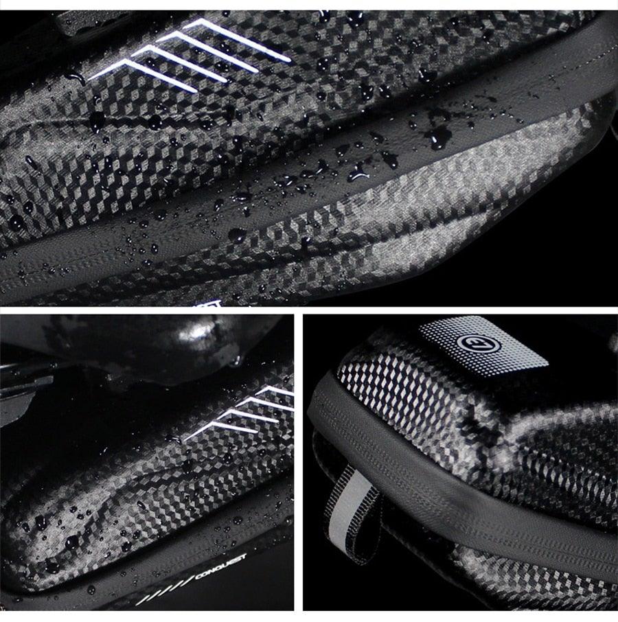 • HARD SHELL SURFACE: Made of high quality  material, the surface of the  bag feels textured and lustrous. You can really feel the material of the bag and general product is different. Moreover, smooth surface makes the bike seat bag easy to clean.