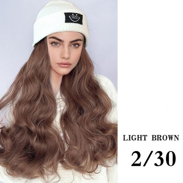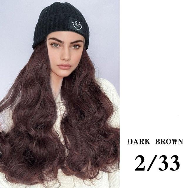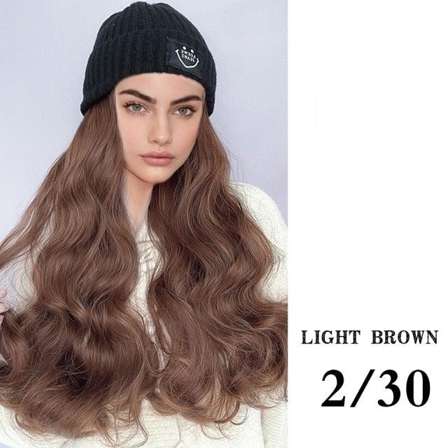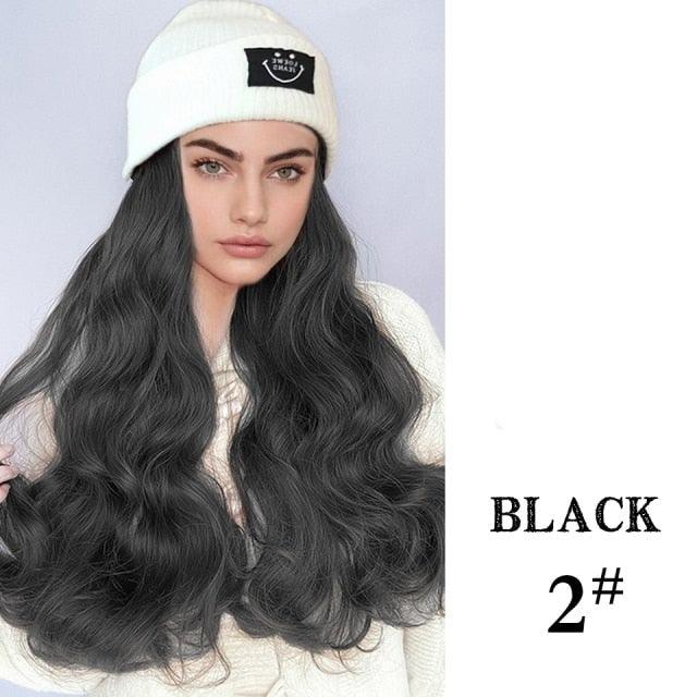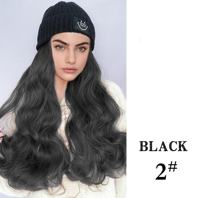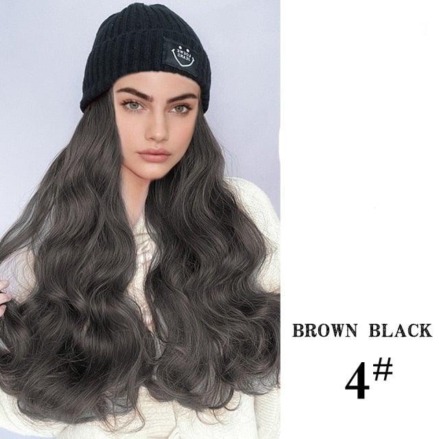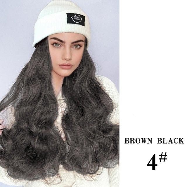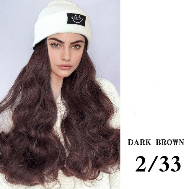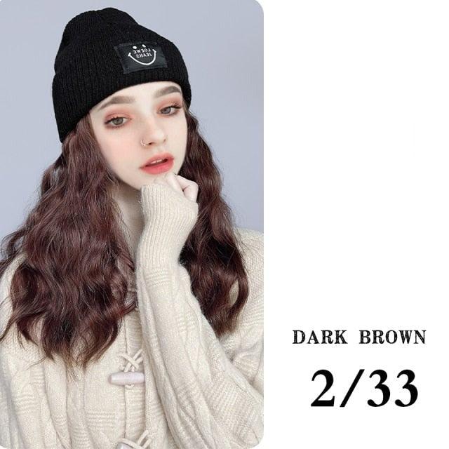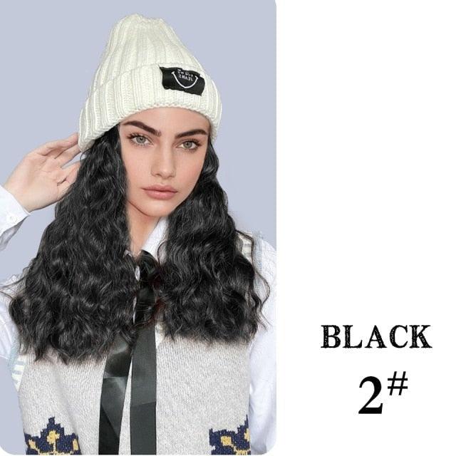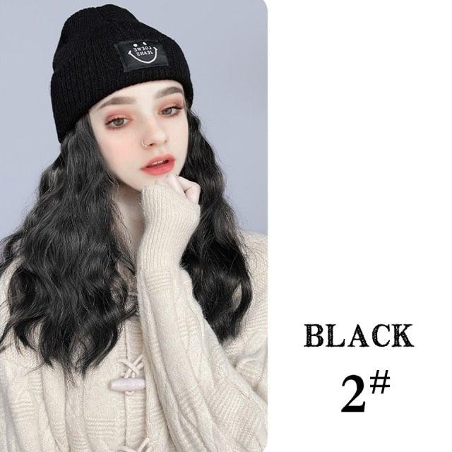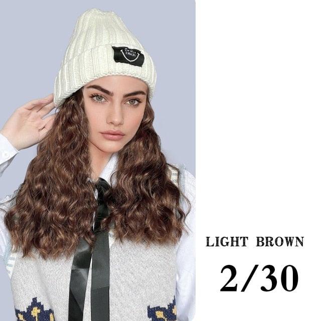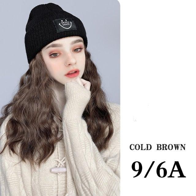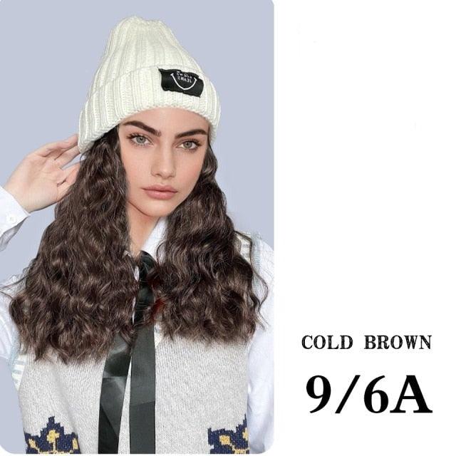 Hat Wig For Women Synthetic Long Wavy Wigs Autumn Winter Fashion Knitted Cap Hair Wig Hair Extensions Wigs For Black Women Cosplay Wigs For Women