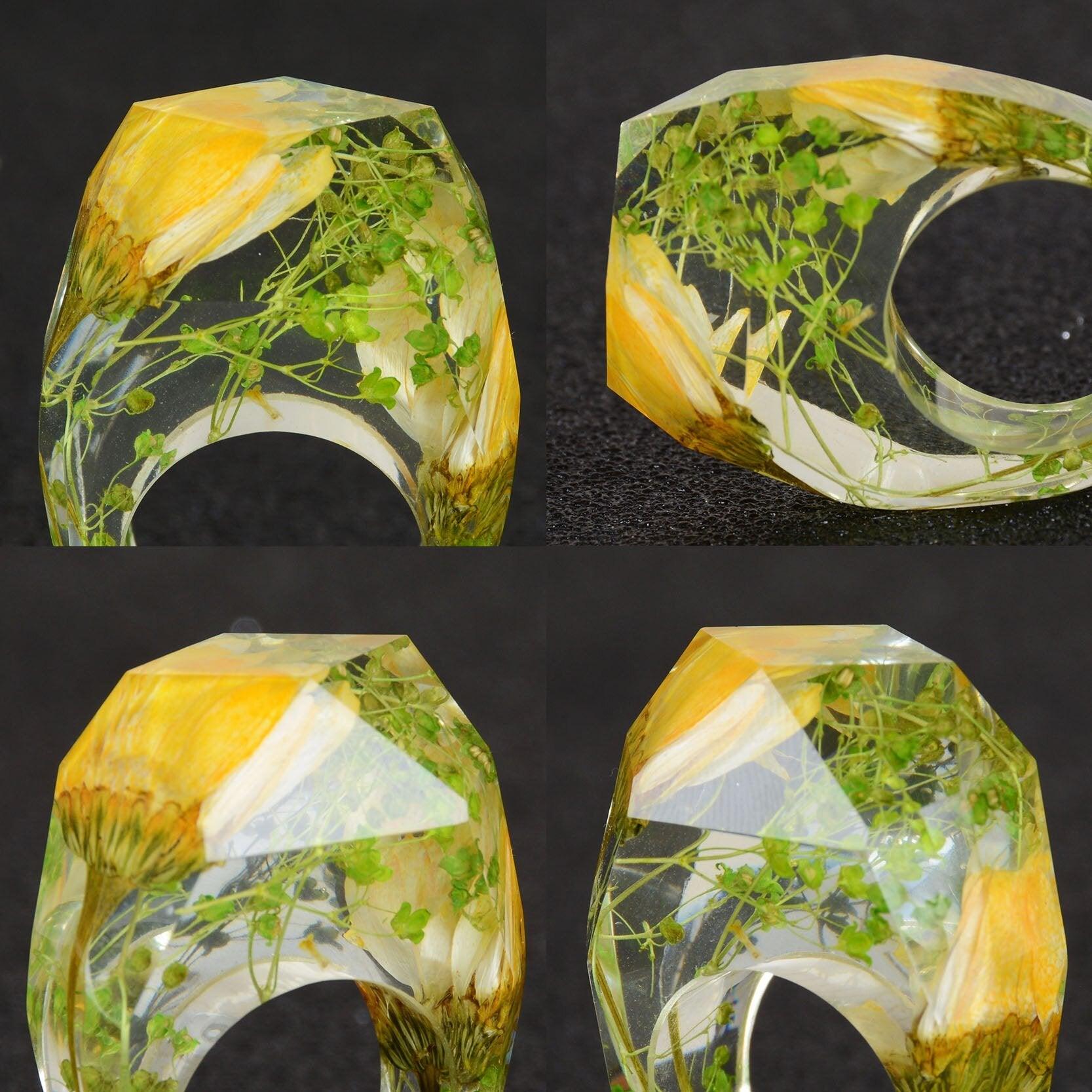 Luxury Handmade Ring With Dried Flowers Gold Foil Paper Inside Resin Ring For Women Engagement Party Wedding Bands Finger Rings Jewelry