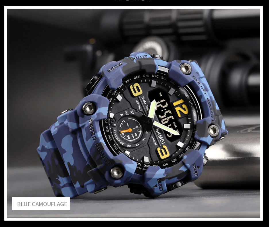 • DUAL DIAL TWO TIMEZONE: analog and digital dual dial support two different timezone. Shock resistant, stop watch, military 12H/24H time, and LED back light functions make it perfect for all kind of sport and daily use