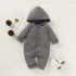 Newborn Clothing Solid Long Sleeve Hooded Button Pockets Romper Winter Warm Jumpsuit for Girls and Boys