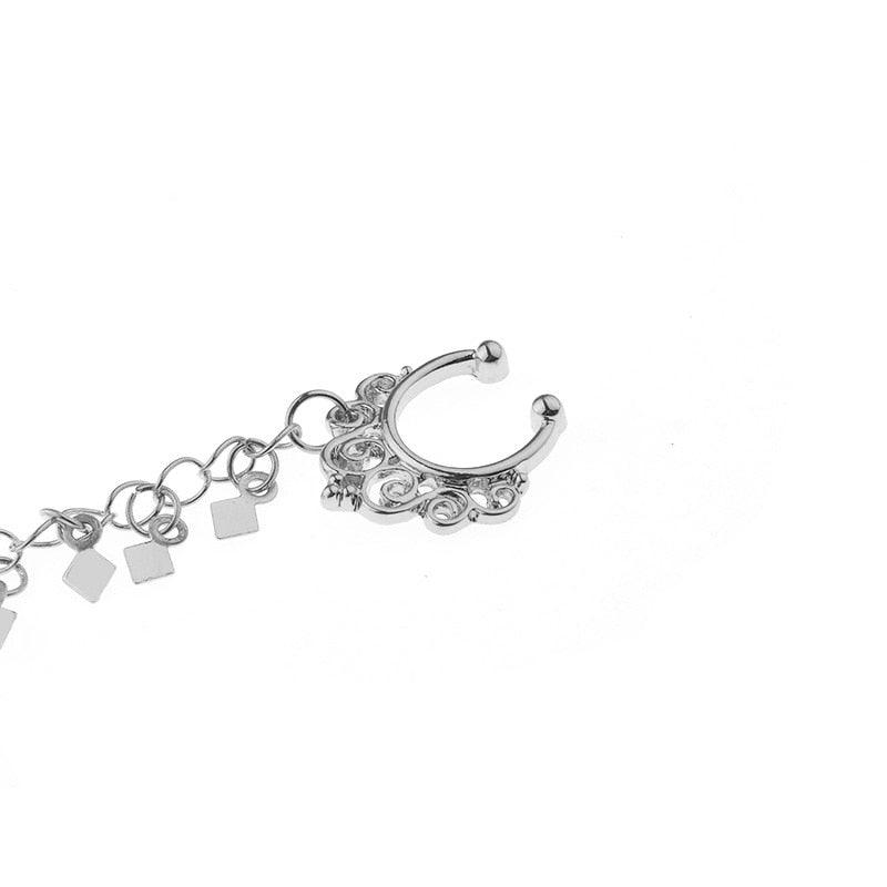 Nose Ring Chain, Hanging Disc Hoop-Ear Chain Nose Ring Tribal Jewelry Celebrity Jewelry Belly Dance Fashion Jewelry Bridal Wedding Clip On Nose Ring Chain Golden Nose Ring Chain Jewelry Ring Chain to Ear Nose Studs with Sequin Tassel Body Jewelry