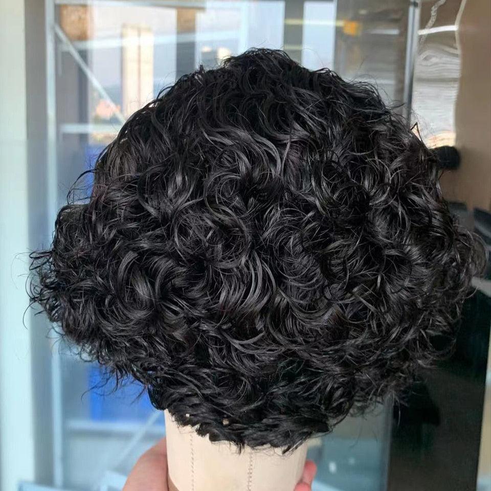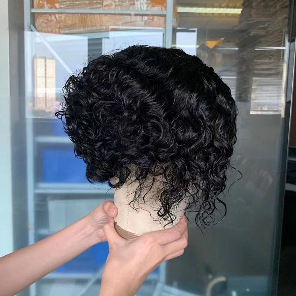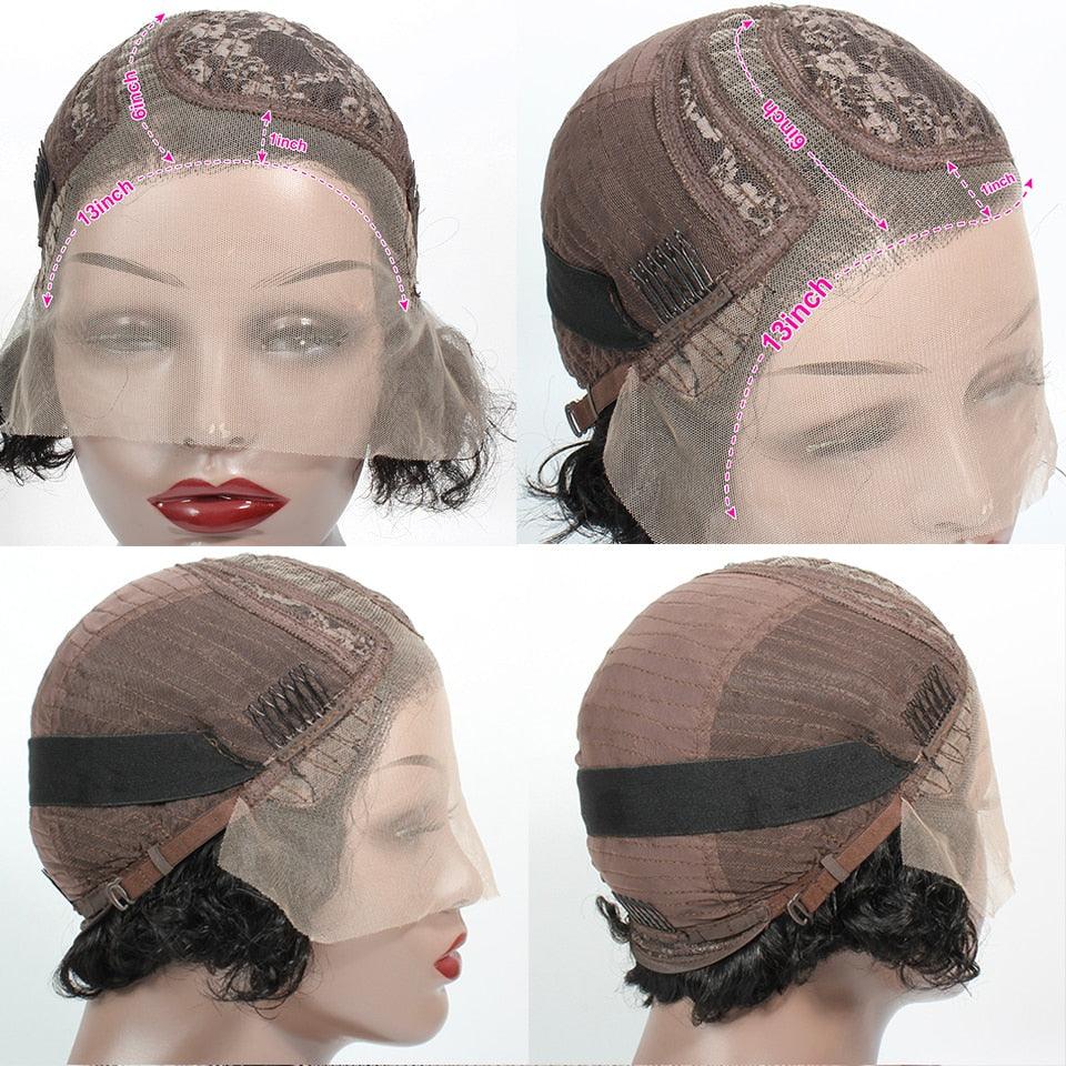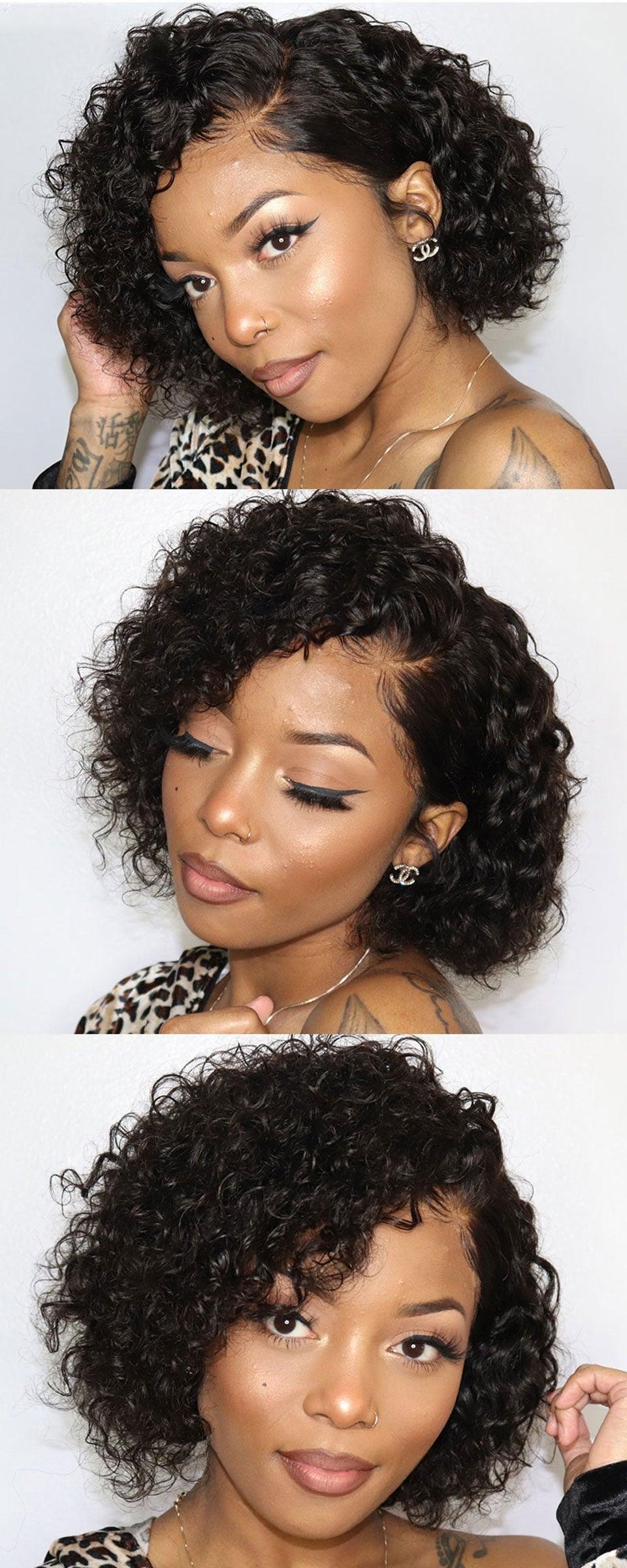 Pixie Cut Short Curly Lace Front Human Hair Wigs for Black Women Brazilian Water Deep Wave Side Part Bob Wig Transparent Lace Wigs For Black Women Gifts for Girlfriends