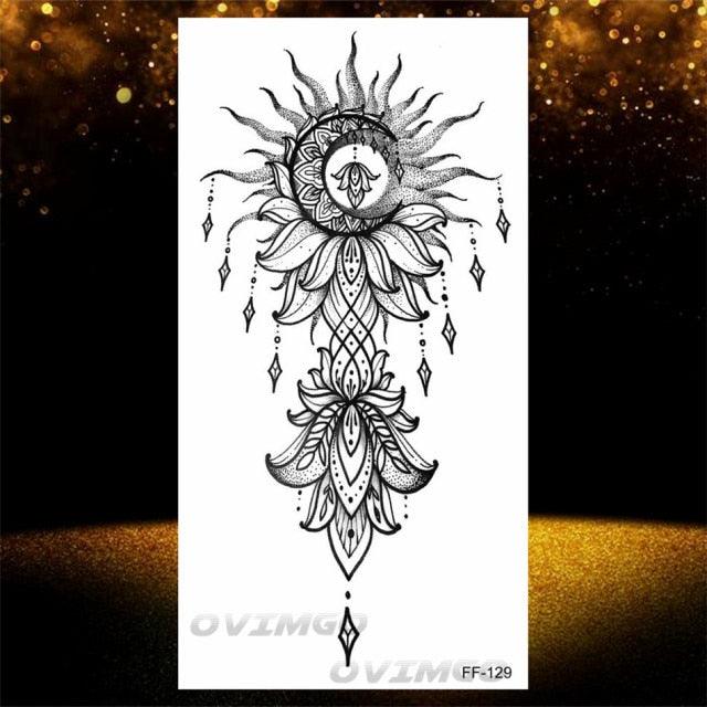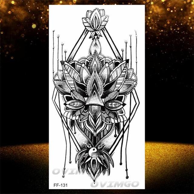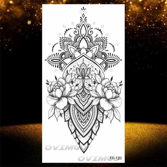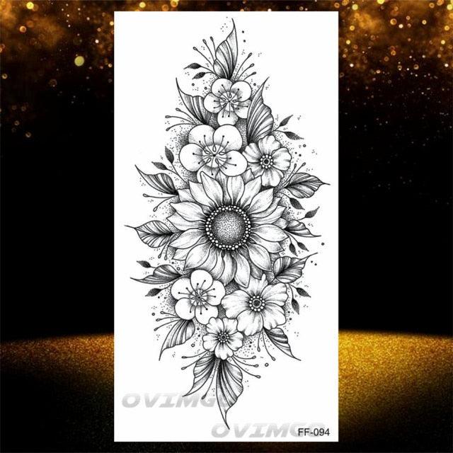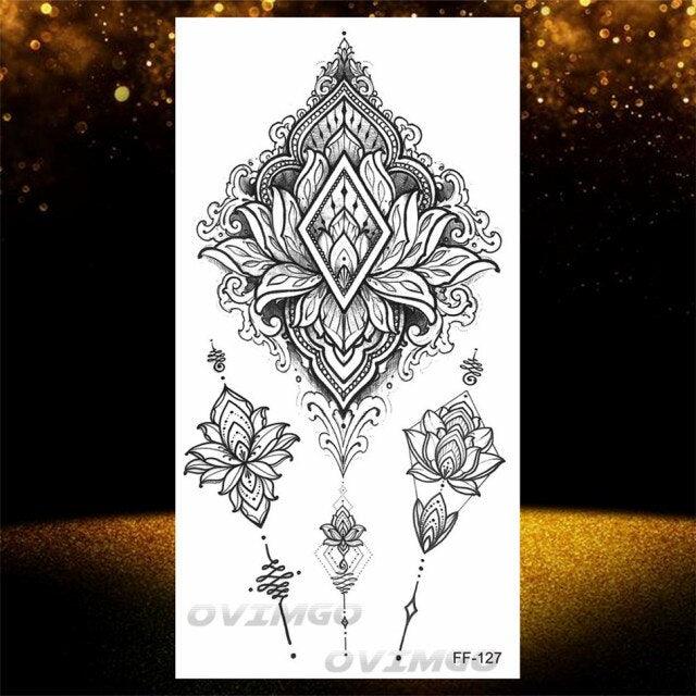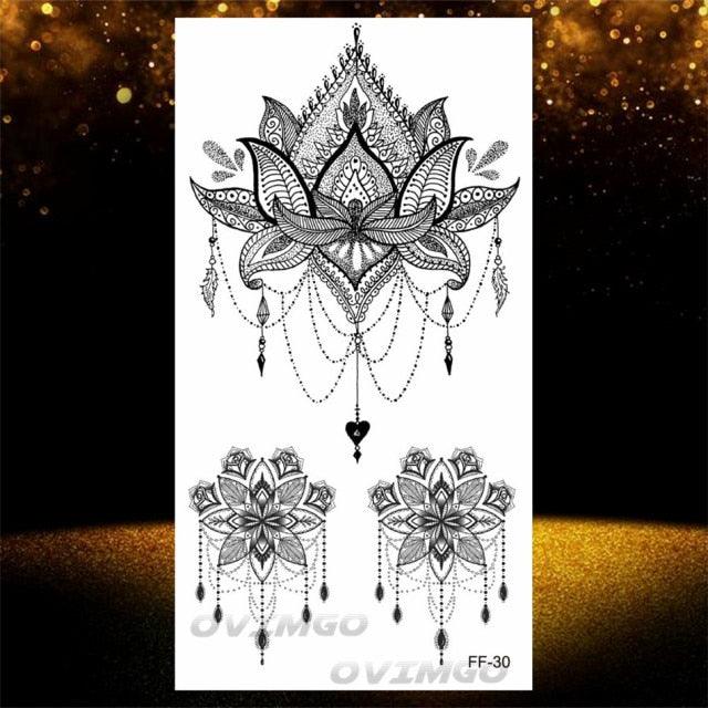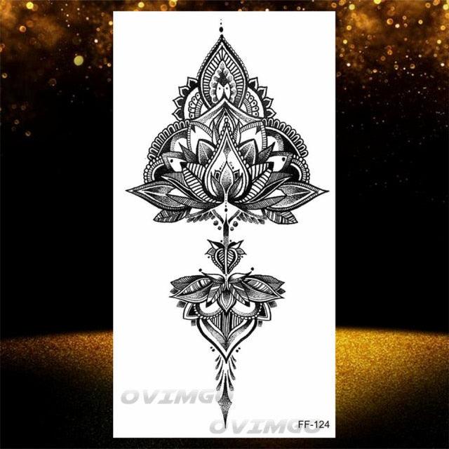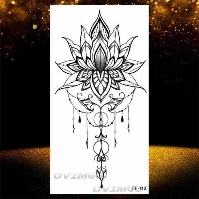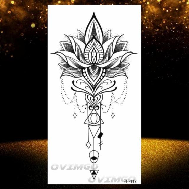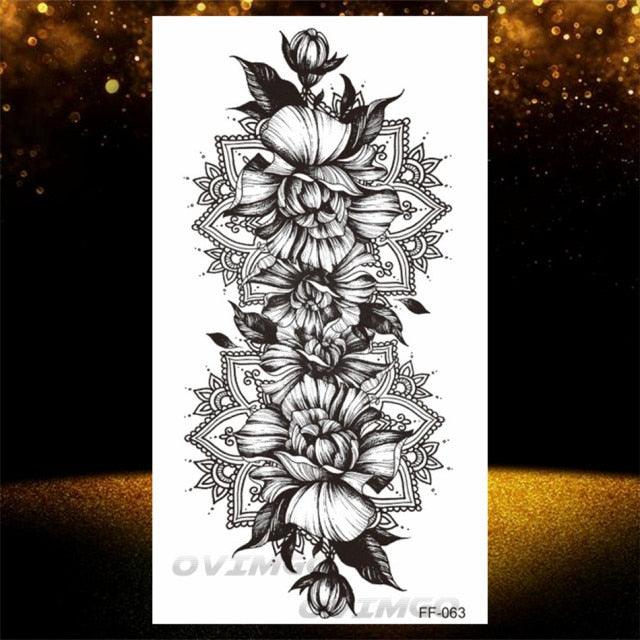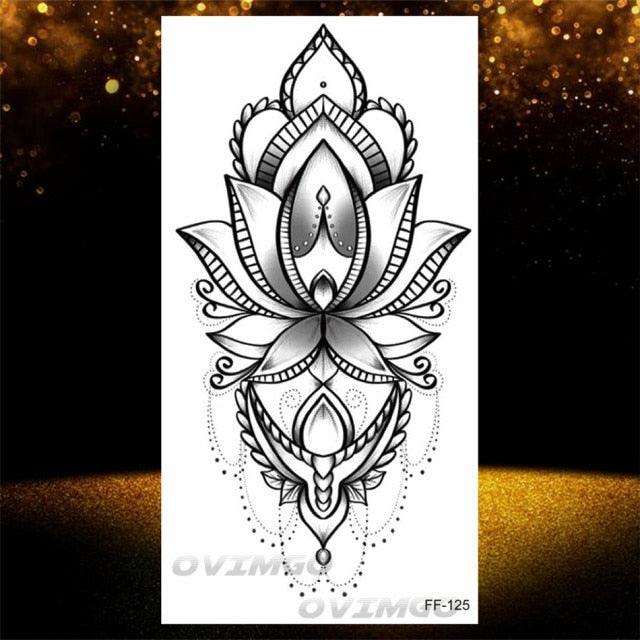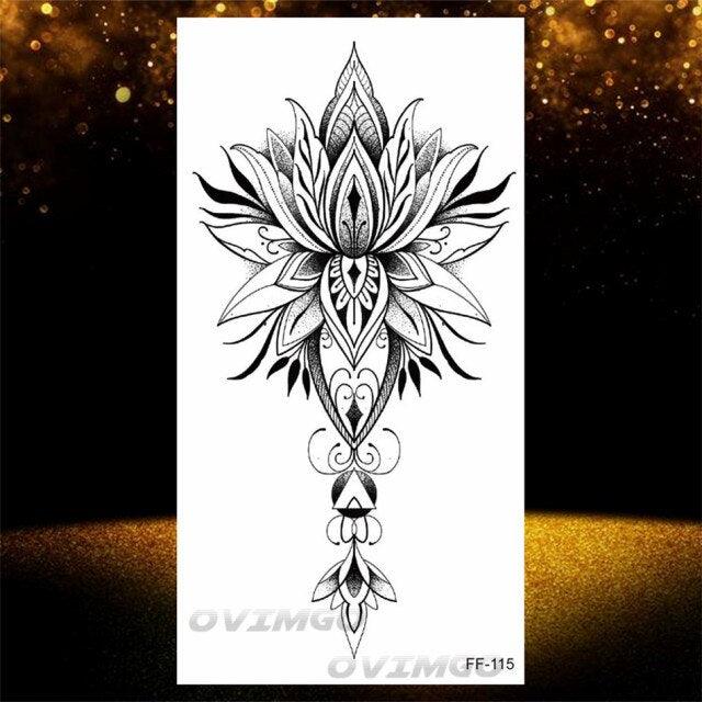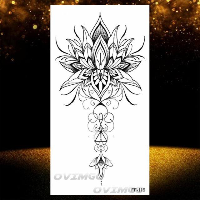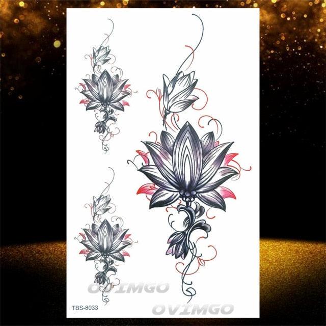 Temporary Lotus Flower Sticker Tattoo Fake Black Elegant Flower Design Women Body Art Fake Arm Tattoo Stickers For Womens