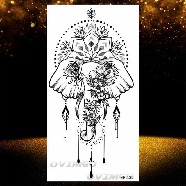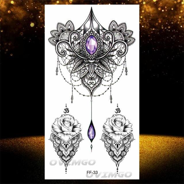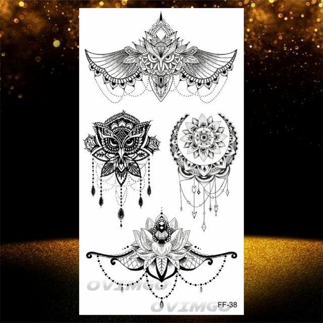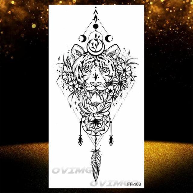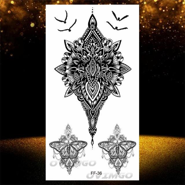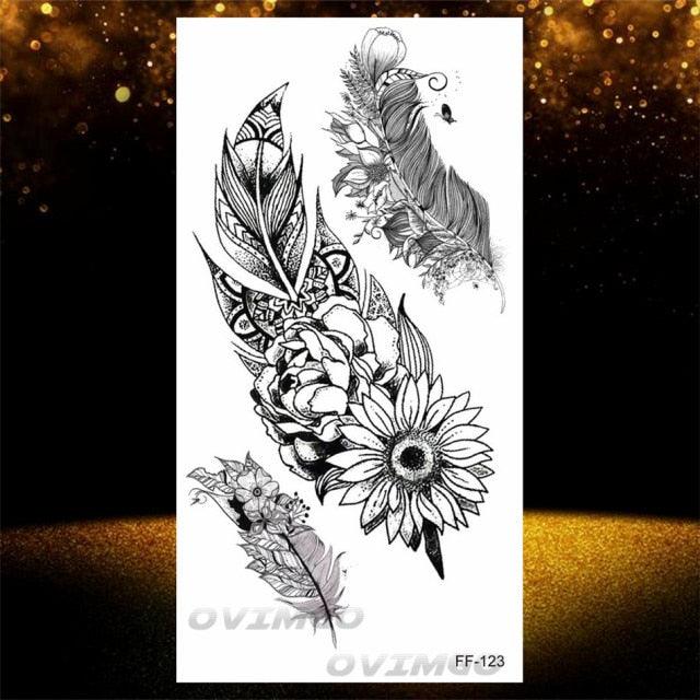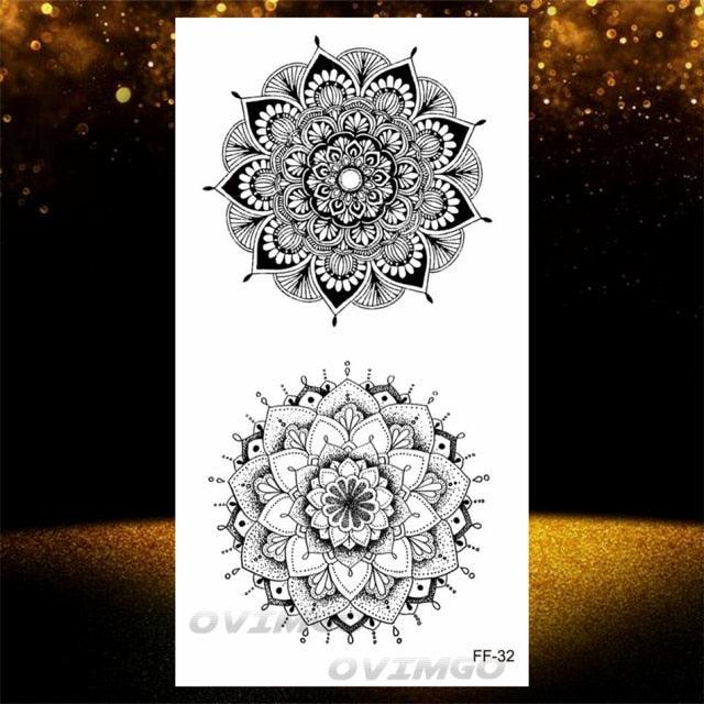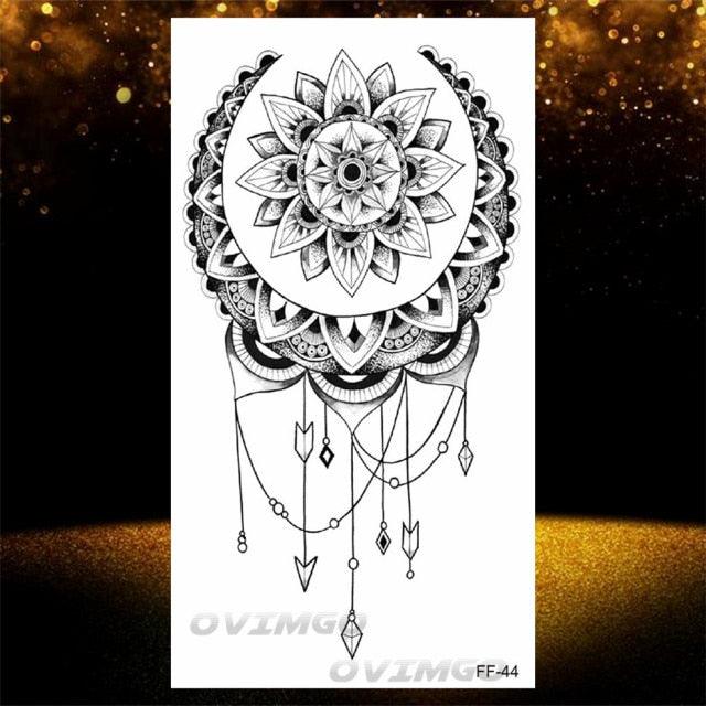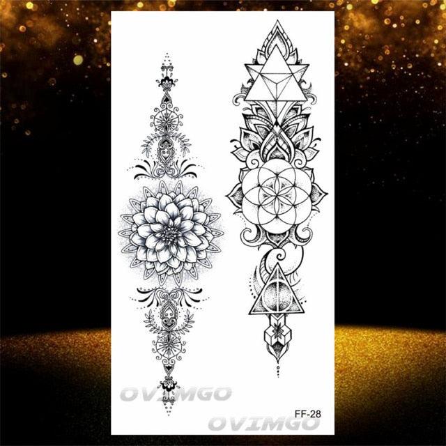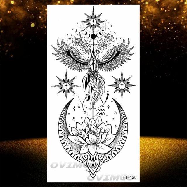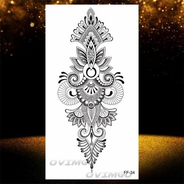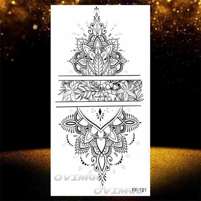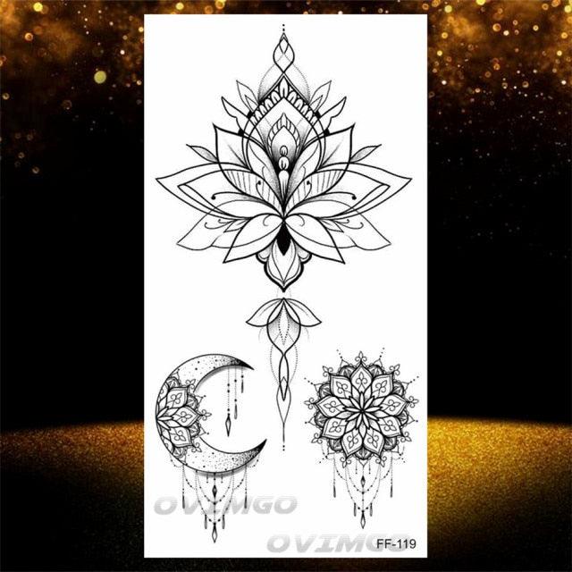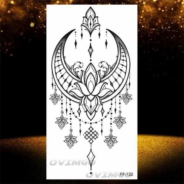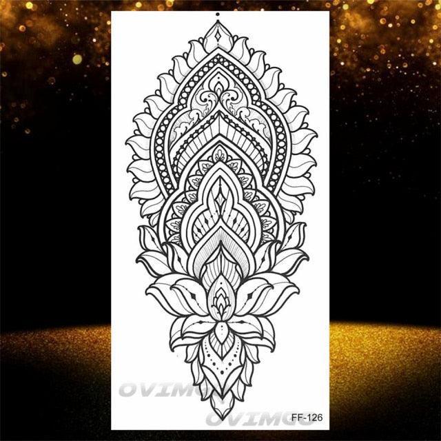 Temporary Lotus Flower Sticker Tattoo Fake Black Elegant Flower Design Women Body Art Fake Arm Tattoo Stickers For Womens