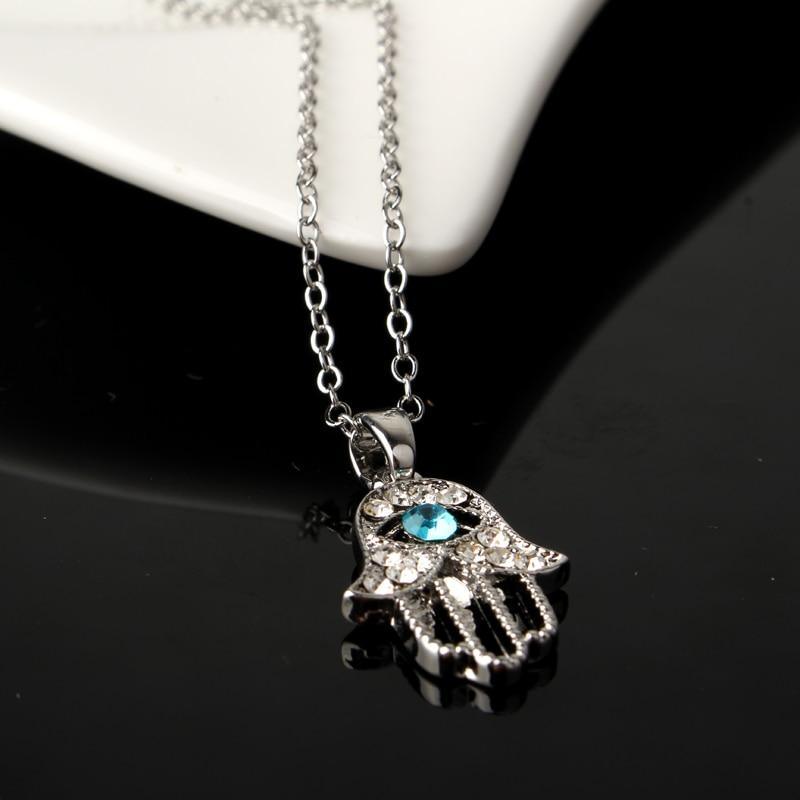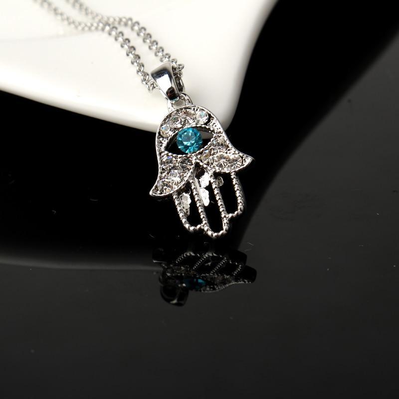 Modern Turkish Crystal Elegant Evil Eye Hand Hamsa Pendant Necklace Luxury Women Amazing Color Jewelry Hollow Out Clavicle Link Chains