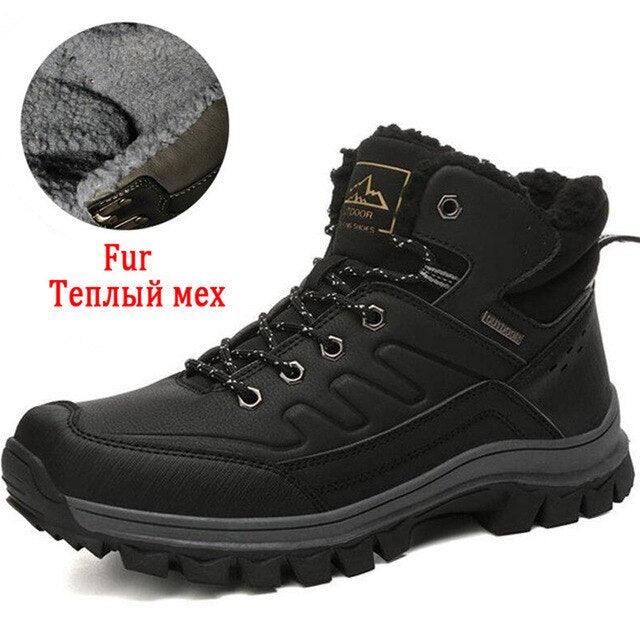 Winter Mens Boots Plush Warm Snow Boots Waterproof Outdoor Short Boots Leather Ankle Hiking Boots Mens Waterproof Outdoor Snow Boots Winter Cold Weather Shoes