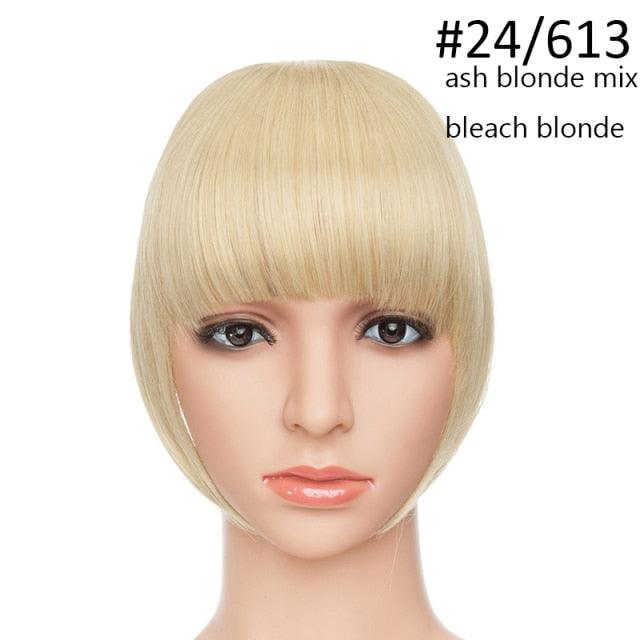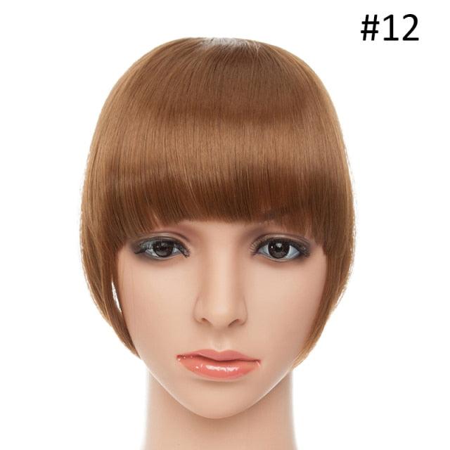 Women Clip In Hair Bangs Hairpiece Clip In Hair Extension Synthetic Hair Extension Blunt Bangs Fake Bangs For Women Flat Neat Bangs With Temples For Women One Piece Hairpiece