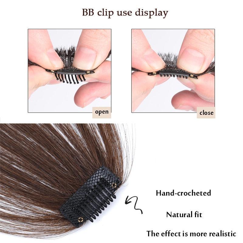 • Natural Experience & Blend well: Clip in hair bangs with temple are made of premium quality High Temperature Fiber, sewn in good clips. The clips have a strong strip and seam is barely invisible, so other people cannot tell it is a bang on top of your own hair. Also enough thickness to cover the forehead without worrying about Wispy.