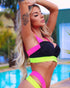 • NEW DESIGN- Bold neon patchwork bikini set will make you look look amazing during your beach vacation, at a swimming pool or even on your honeymoon trip.