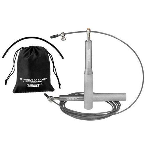 • PREMIUM MATERIAL: The braided wire rope has been coated with fine PVC to ensure durability. One can enjoy a smooth workout without any stress of cracks and breakage. The aluminum handles are sleek, light in weight and assures maximum grip. The 360 degree ball bearings of this speed skipping rope make sure you enjoy the smoothest swing every time.