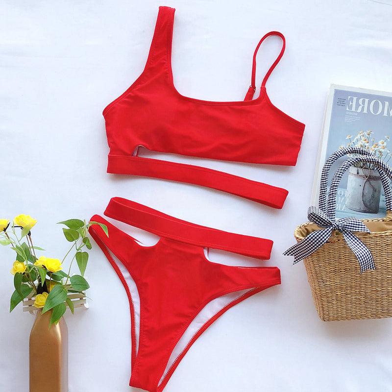 • CLASSIC TOP-  elastic shoulder strap, push up bikini top; This Solid Bathing Suit features Full Coverage,Scoop Neck,Removeable Padded, High Cut and Double-layered
