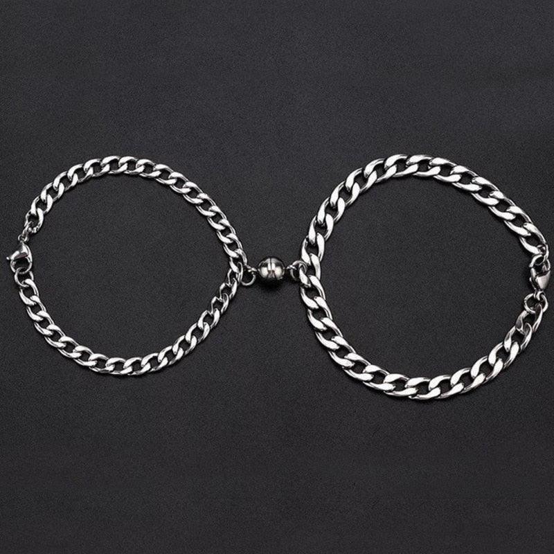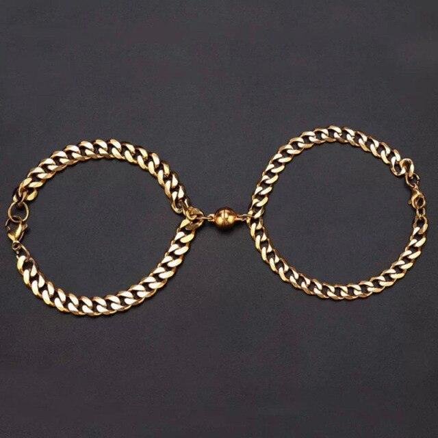 Elegant Magnet Stainless Steel Couple Bracelet Alloy Chain Bracelet Stainless Steel Cuban Chain Couples Bracelets Matching Bracelets For Couples Magnetic Adjustable Couple Bracelet Luxury Jewelry For Women