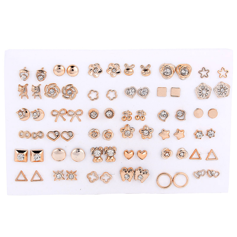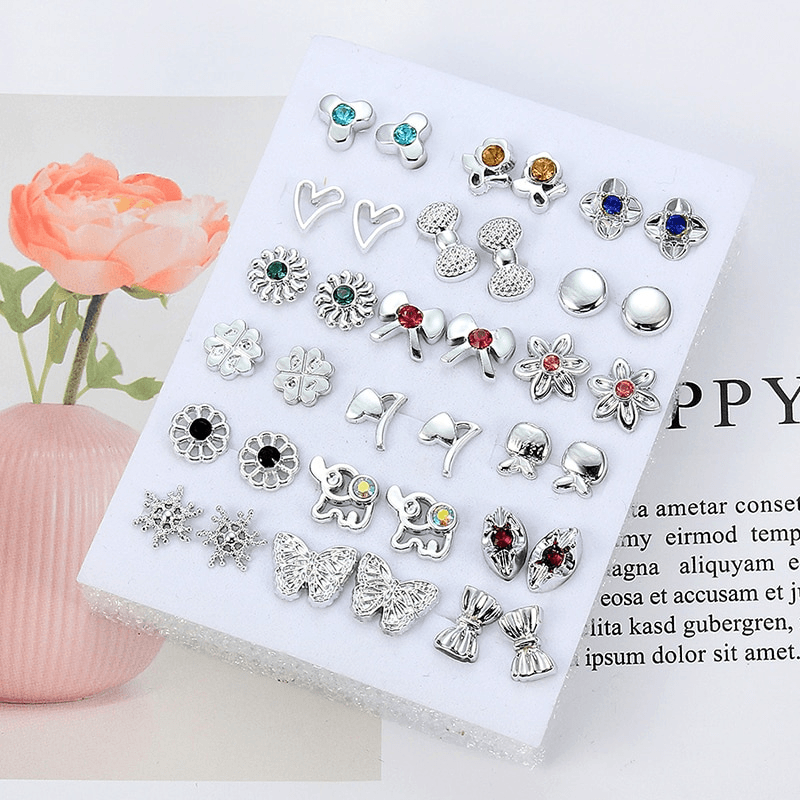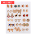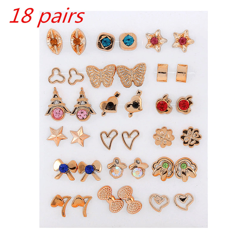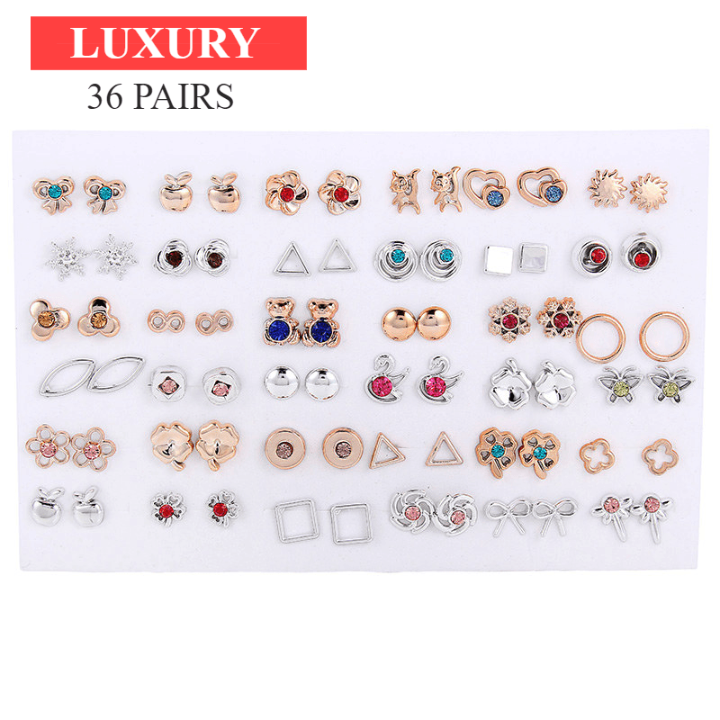 36Pairs/18pairs Earrings Mixed Styles Rhinestone Sun Flower Geometric Animal Plastic Stud Luxury Earrings for Woman and Kids