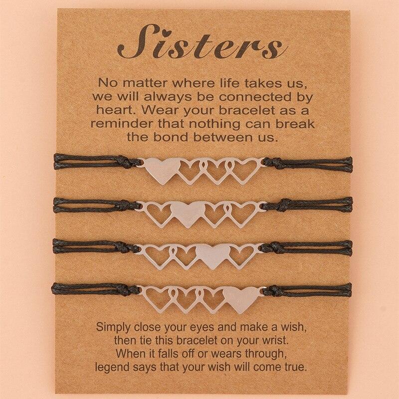 4pcs/set Charismatic Heart Sisters Card Bracelets Best Friendship Forever Stainless Steel Handmade Mother Daughter Wish Bracelets Set Mommy And Me Heart Charm Relationships Matching Bracelet With Card For Women Sister Mom