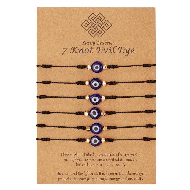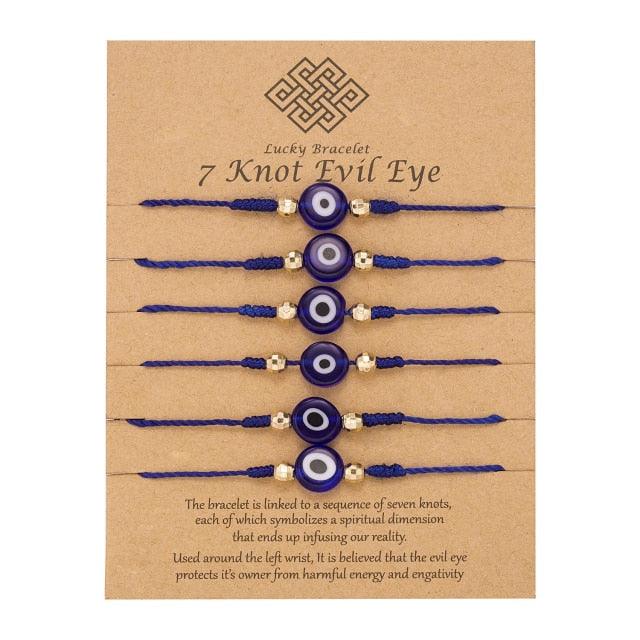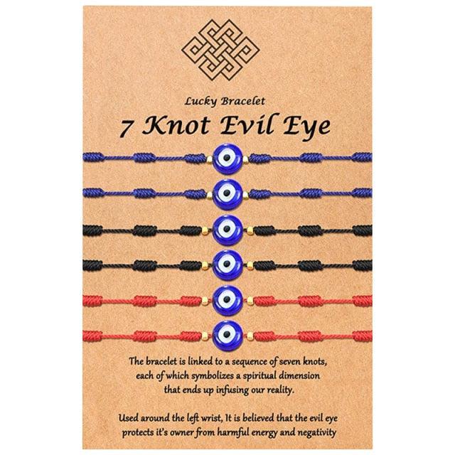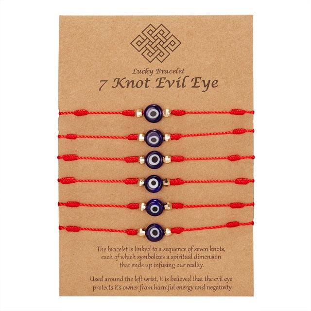 6pcs/set Handmade Bracelets Braided Red Black Rope 7 Knots Lucky Jewelry Friendship Protection Bracelet Red Comfortable Bracelet Small Eye Bracelet For Kids