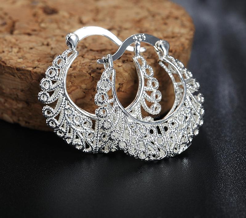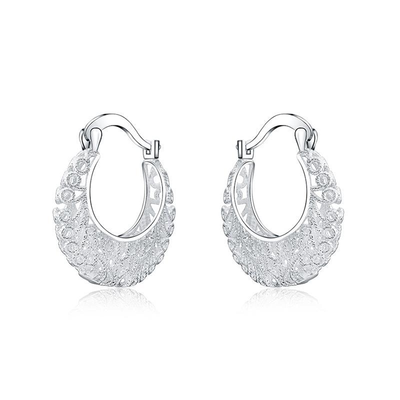 Luxury Silver Fashion Weave Hollow Moon Hoop Earring For Women