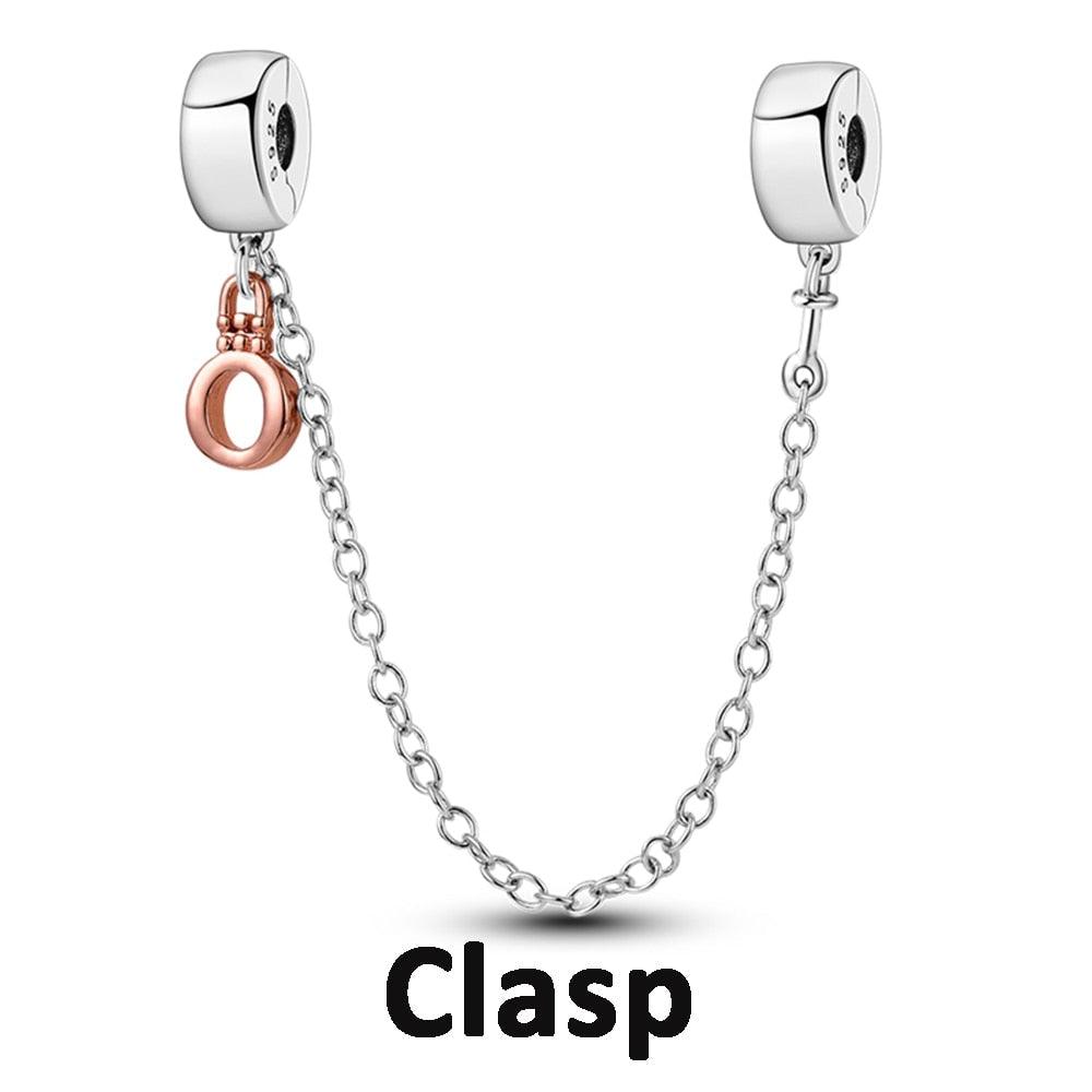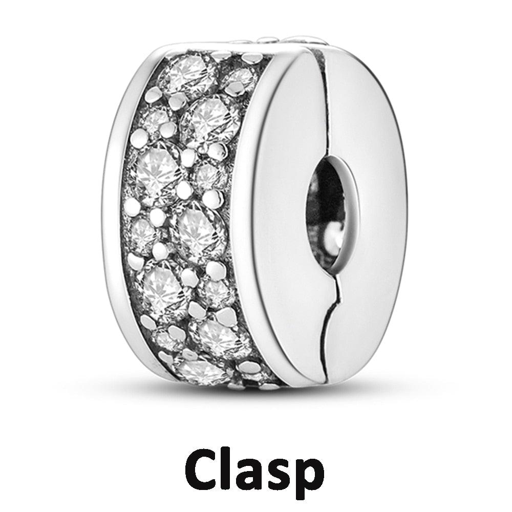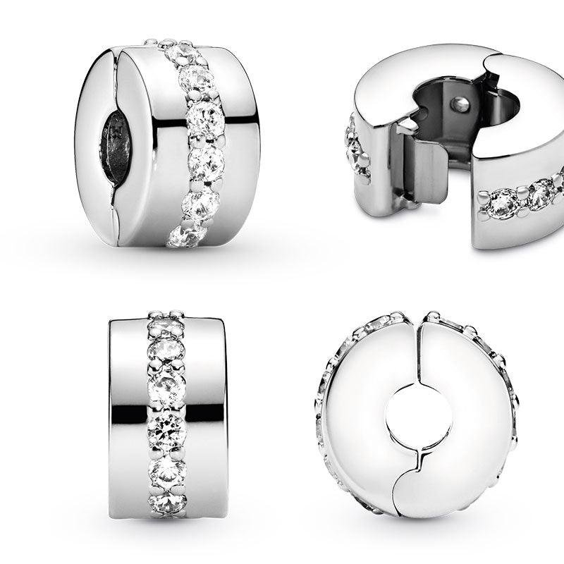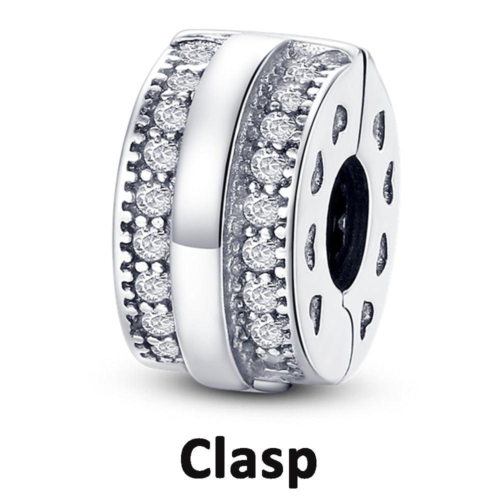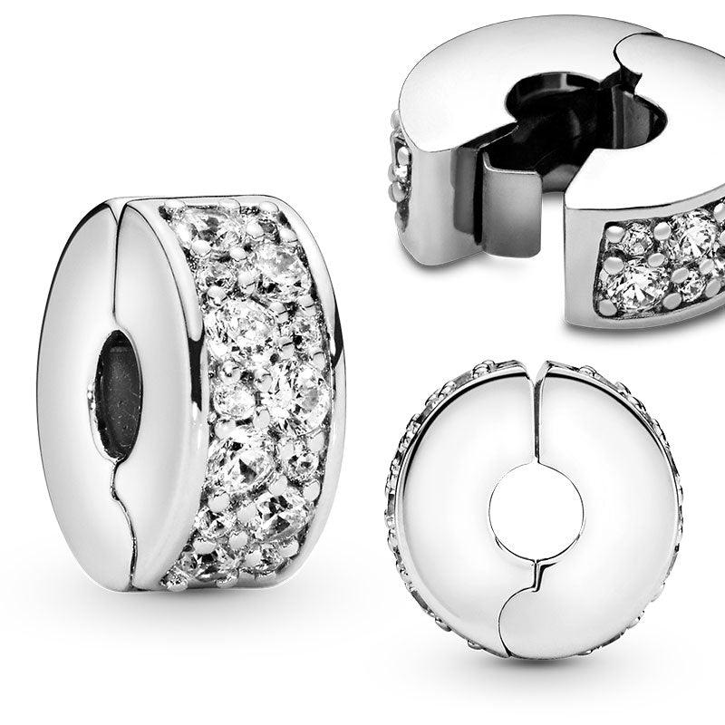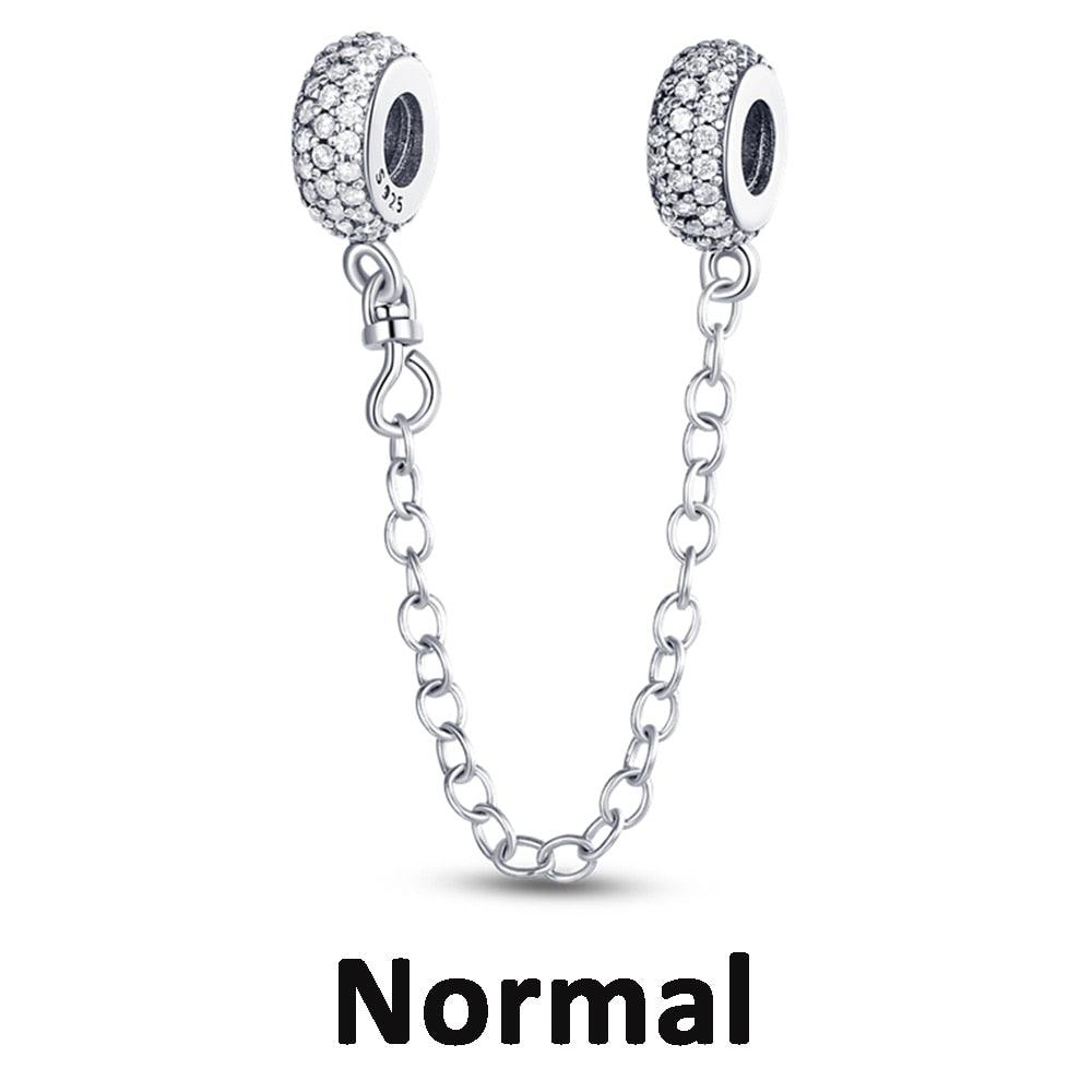 925 Sterling Silver Clear Pave Clip Charm Safety Chain Zircon Beads Fit Original Bracelets Women Jewelry Making Bead Charm Jewelry for Charms Bracelets for Women