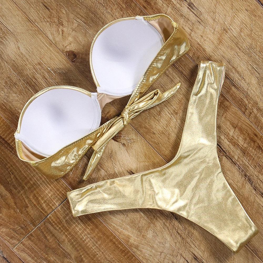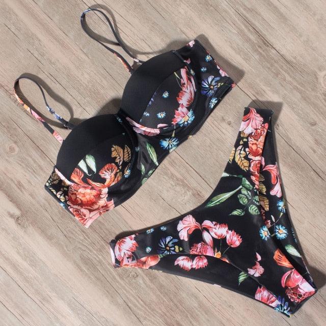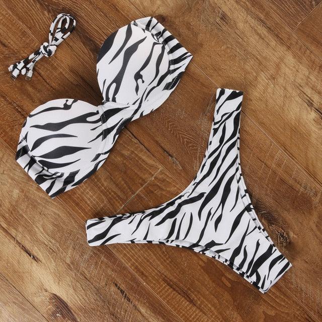 Animal Print Leopard Bikini Push Up Swimsuit Women Bikini Set Bathing Suit Bandeau Beach Wear Swimwear Women Casual Leopard Printed Triangle High Waist Two Piece Bikini Sets