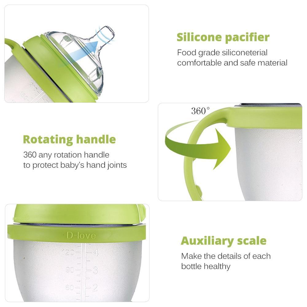 • MATERIAL: Made of Silicone. It is soft enough,drop-resistant and easy to clean. BPA-free material and dishwasher safe. Wide neck design is convenient for parents to clean it by brushes or hands.