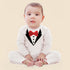 • FASHION DESIGN Adorable cute and fashion one piece long sleeve cotton romper outwear, with bow tie design, buttons down design of vest and snap up closure crotch style, great gifts for toddler boys.