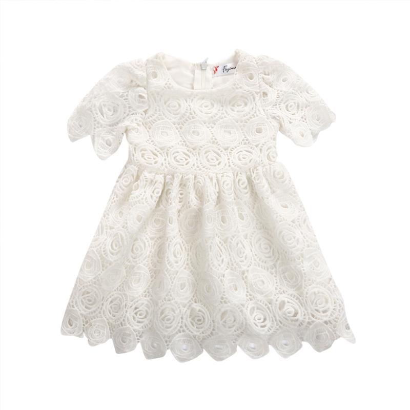 Handmade Classic Baby Girls Dress with Princess Floral Lace And Hollow Out Short Sleve Party Dress For Girls