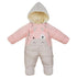 • CONVENIENT : Zipper closure , double full zippers in the front,easy to put on and take off and help to change diaper .Bear hoodie and rib cuff design great for windproof, keep head and hand in cold winter.