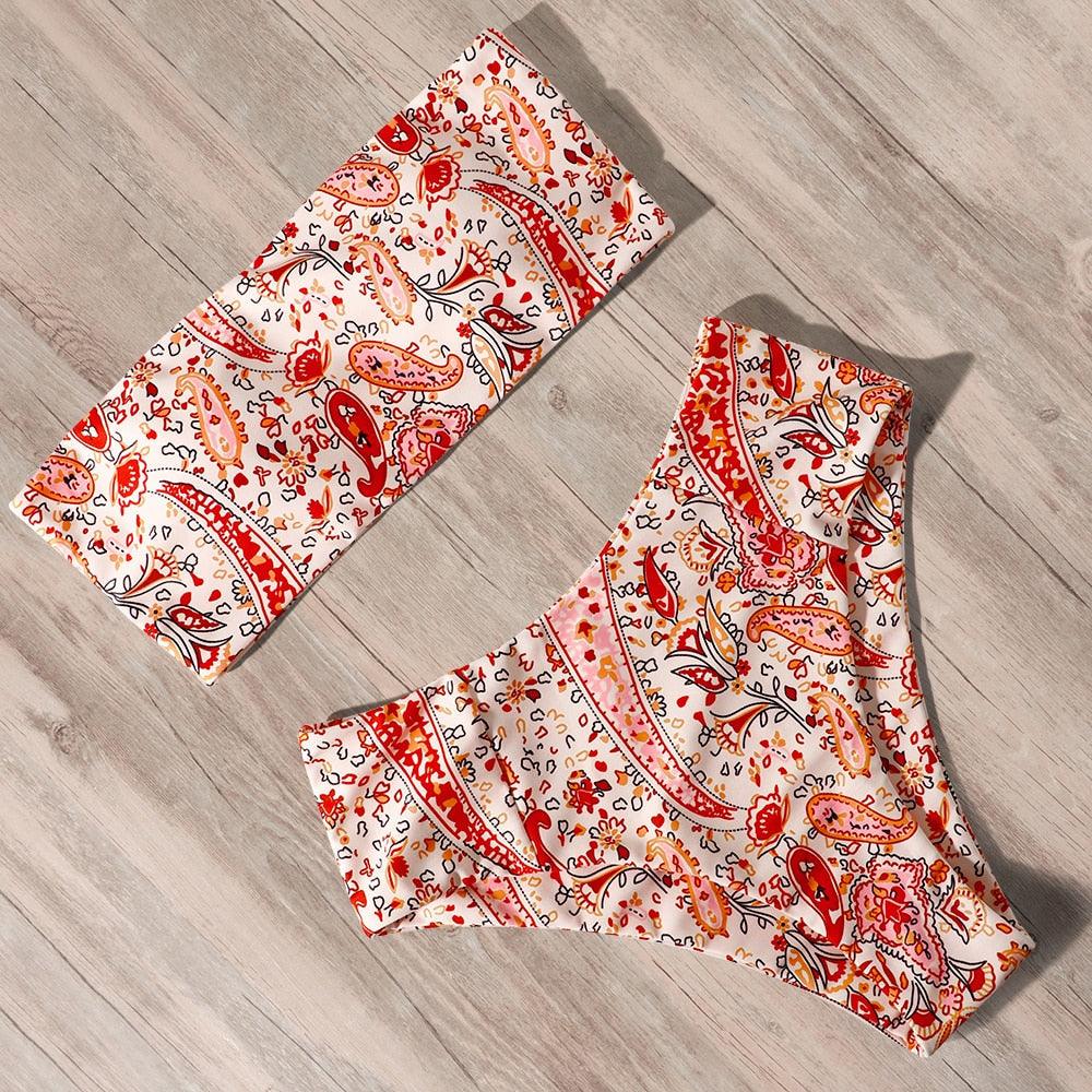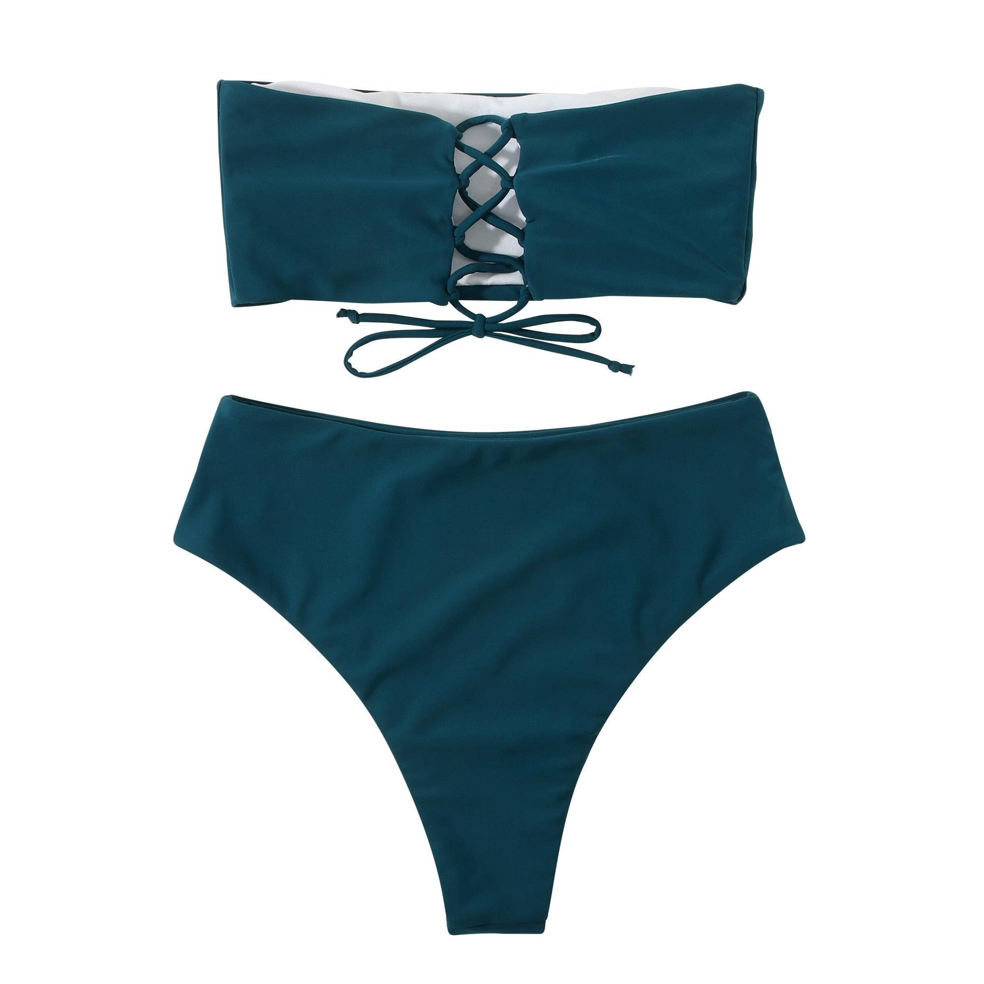 Bandage Bikini Swimwear Women Swimsuit High Waist Bikini Set Bathing Suit Push Up Women's Spaghetti Strap Bandeau Lace Up High Waist 2PCS Bikini Set
