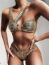 Elegant Women Bandage Swimwear Women Snake Bikini Swimsuit Female Gold Bikini Set Bathing Suit Swim Wear Women Shiny Bikini String Two Pieces Swimsuit Female Swimwear