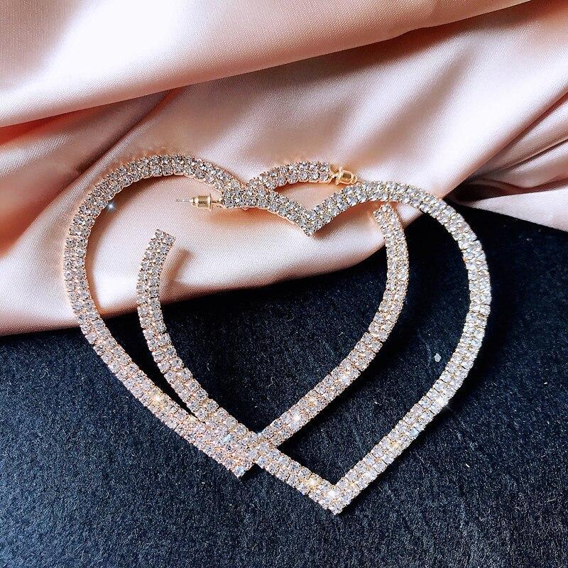 Luxury Diamond Shiny Big Heart Crystal Hoop Earrings for Women Rhinestones Earrings In New Jewelry Gifts Design