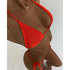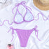 • FEATURES- Silky triangle bikini top, adjustable ties at neck, back and bottom, removeable soft padded, thong bottom.