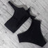 • COMFORTABLE-  bikini one shoulder crop top with one thin strap but stay firmly. Removable pads for breast holder. Double fabric not see-thru!
