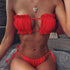 Bikini Women Swimsuit Female Low Waist Swimwear Women Beach Mini Thong Bikini Set Bathing Suit Women Thong Swimsuits Strapless 2 Piece Bikini String Tie Ruffle Brazilian Bathing Suit