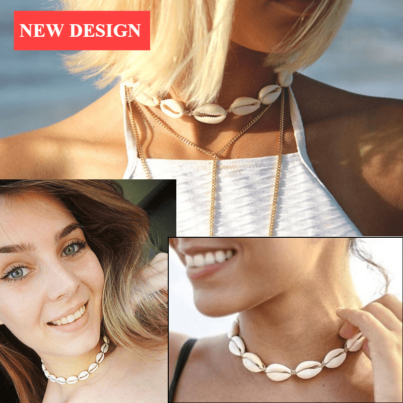 Handmade Luxury Modern Summer Beach Trend Style Bohemian Cowrie Conch Shell Pendant Necklace for Women