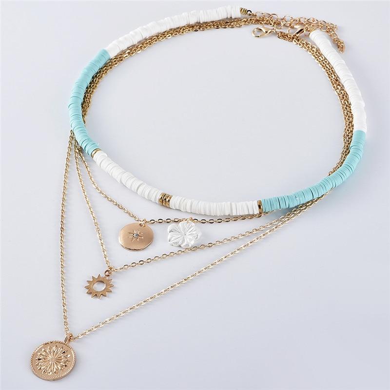 Cool Bohemian Polymer Clay Elegant Choker Gold Color Luxury Sun Flower Pendant Layered Necklace For Modern Women Collier Jewelry