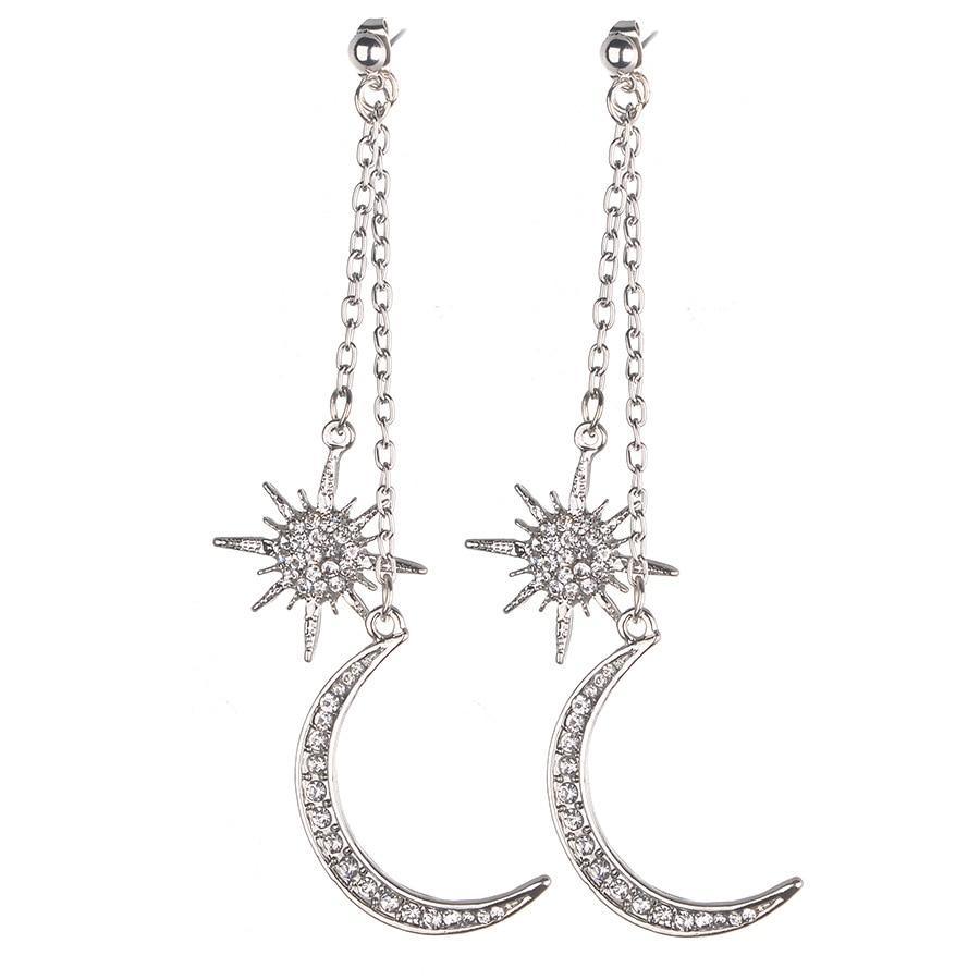 Bohemian Retro Fashion Sun and Moon Exaggerated Long Pendant Earrings For Women and Girls