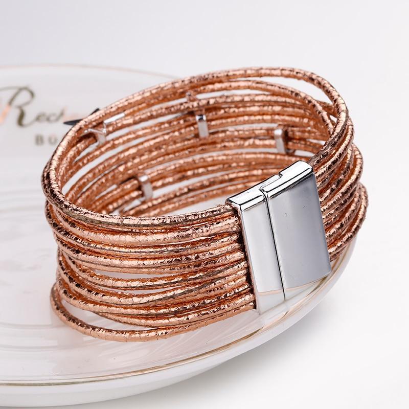 • AVERAGE SIZE FOR MOST WRIST - Leather cuff bracelet is with length 15.5" , width 0.63", 5 strand leather cord wrap twice fit for most women or girl's wrist. With a strong magnetic clasp for the women's wrap bangle you will never worry the bracelet drop off even you take a strenuous exercise