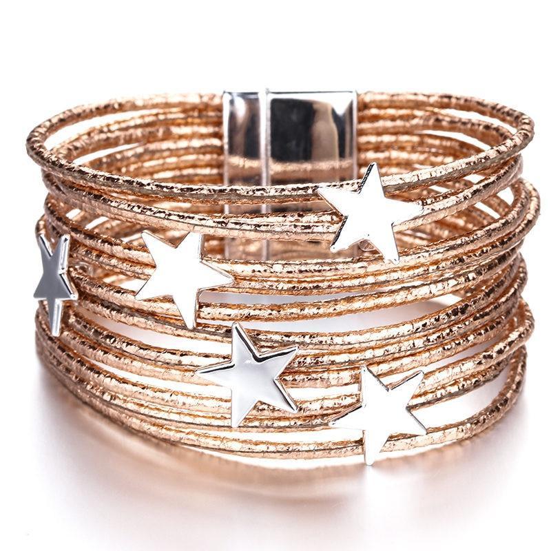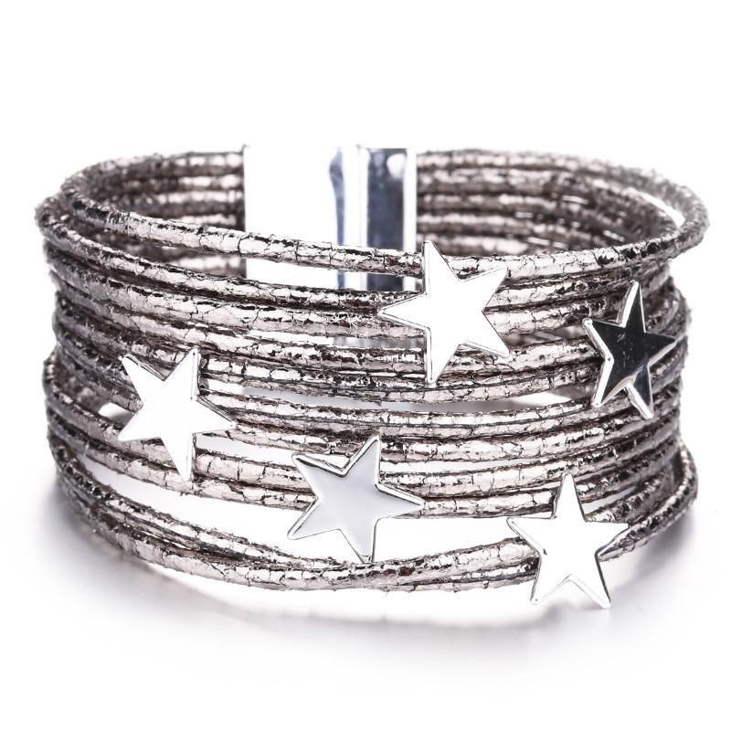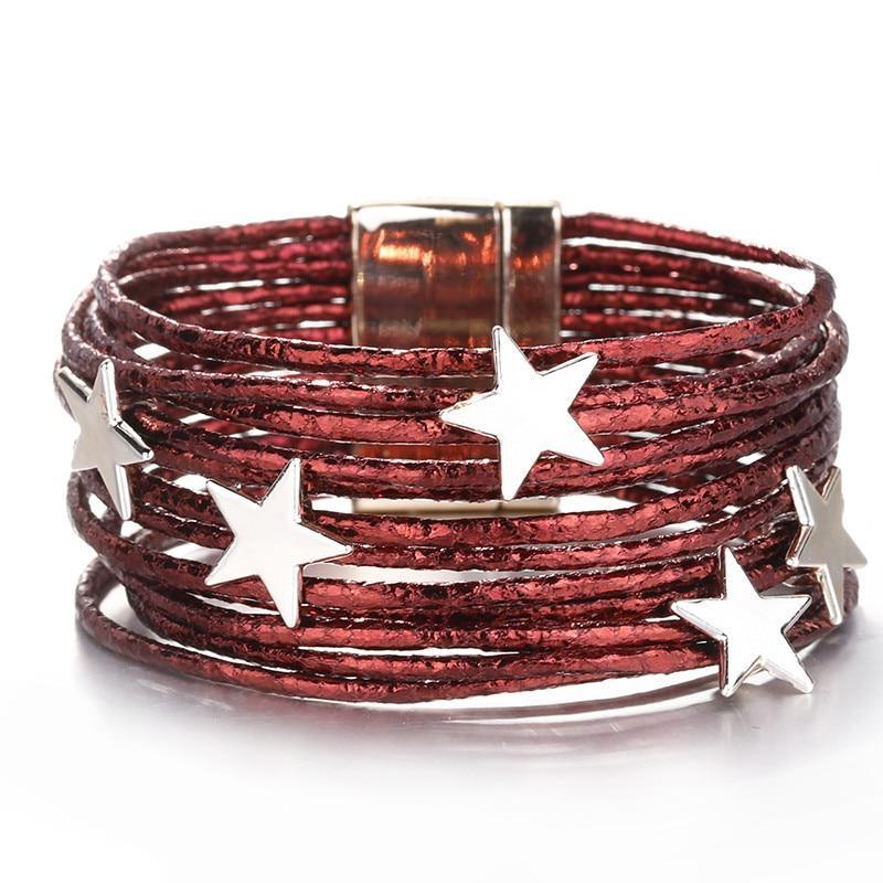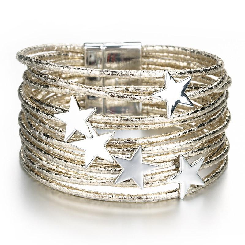 Modern Bohemian Star New Leather Elegant Bracelets Luxury For Women Fashion Pentagram Multi-Layer Wide Wrap Bracelets And Bangles Jewelry