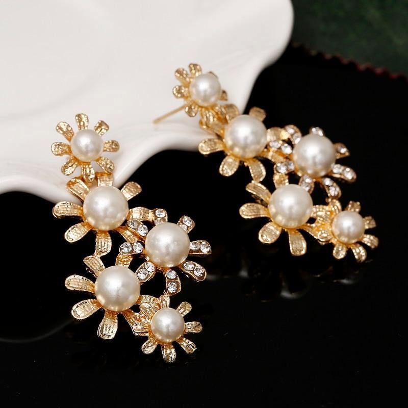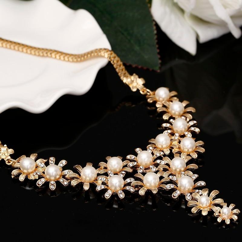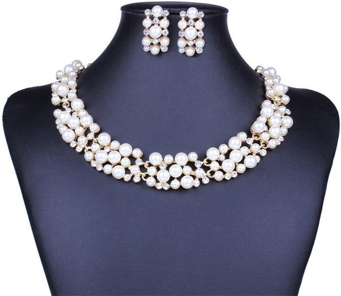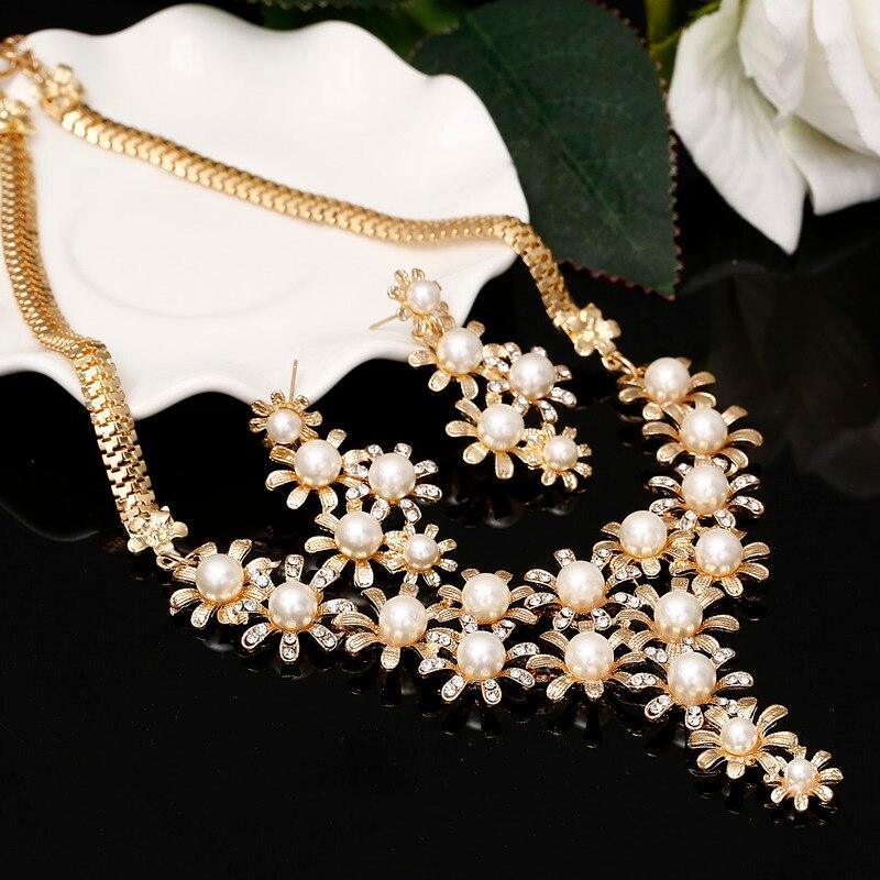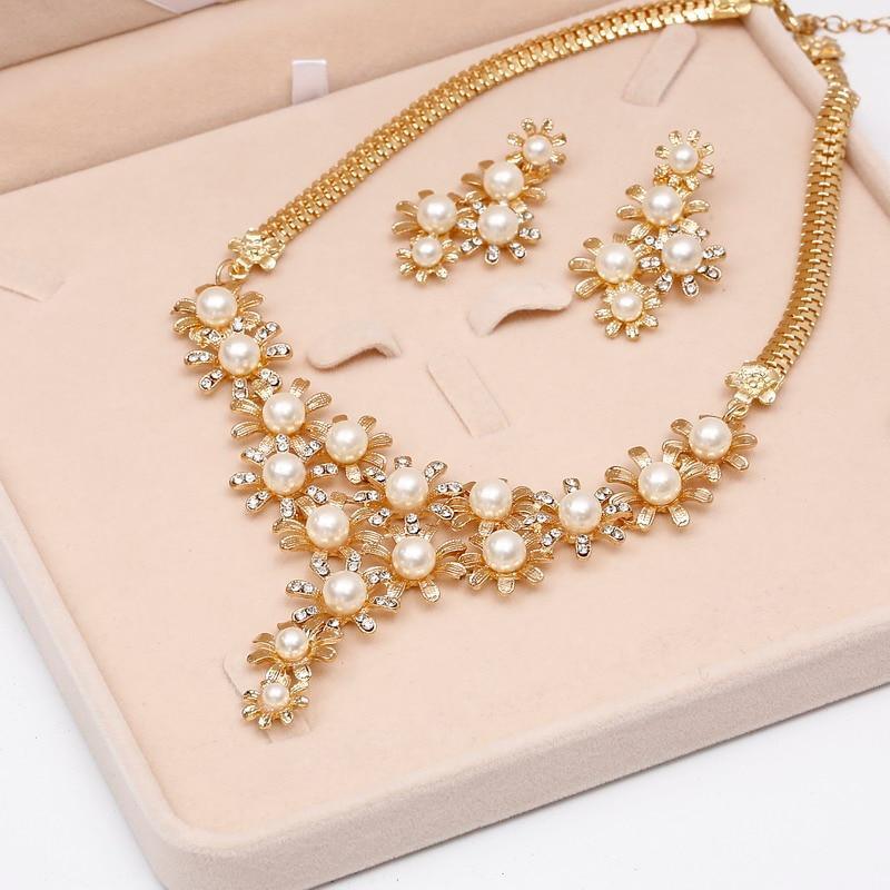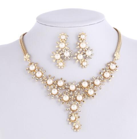 Bridal Simulated Pearl Jewellery Sets for Women's Dresses Accessories Cubic Necklace Earrings Set Gold Color