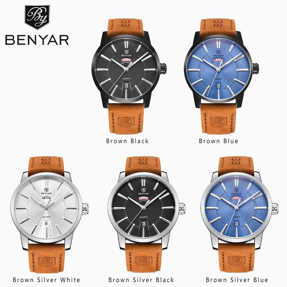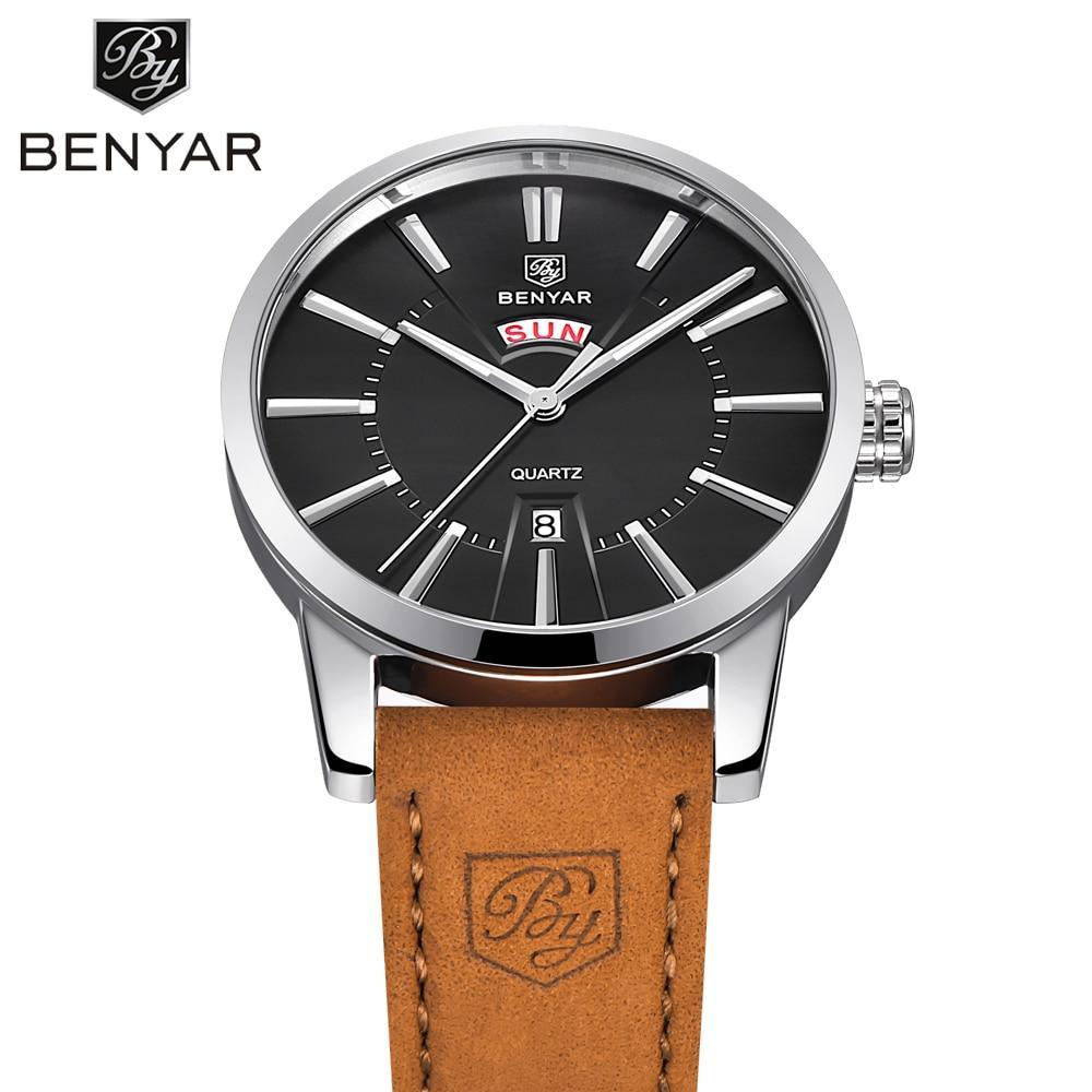 Business Fashion Men Watches Brown Luxury Military Leather Band Wristwatches Date Week Display Watch