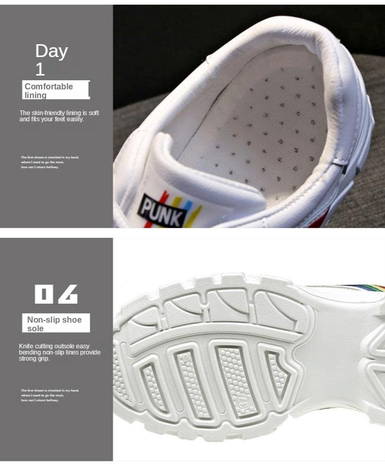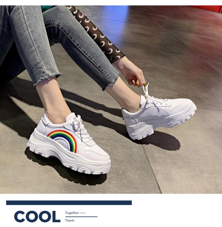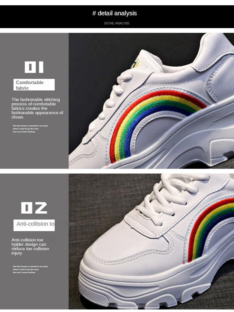 Casual Winter Women Thick Sneakers White Shoes Autumn Winter Fashion Platform Shoes Female Lace Up Rainbow Vulcanized Shoes Comfy Fashion Sneakers Breathable Athletic Casual Shoes