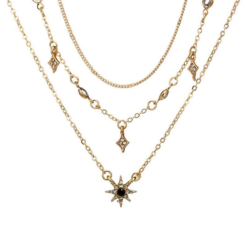 Charm Shiny Gem Crystal Star Bead Chain Tassel Pendant Multilayer Clavicle Neckace Women Boho Gold Party Jewelry