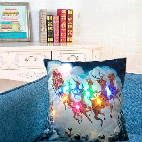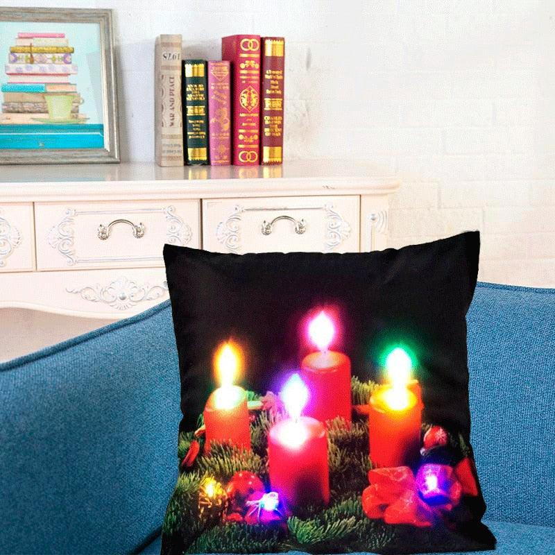 Christmas Cushion Cover Led Light Cushion Covers Xmas Holiday Couch Pillows Rustic Christmas Decorations Winter Pillowcase Light Up Pillow Case Soft Pillows Cover Cushion Santa Pillowcase 45x45CM