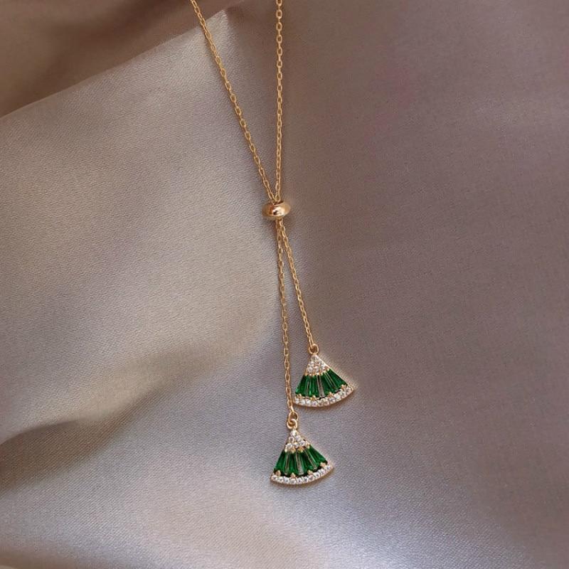 Elegant Classic Green White Crystal Geometric Necklace Luxury Pendant Chokers Modern Necklace For Women Statement Jewelry