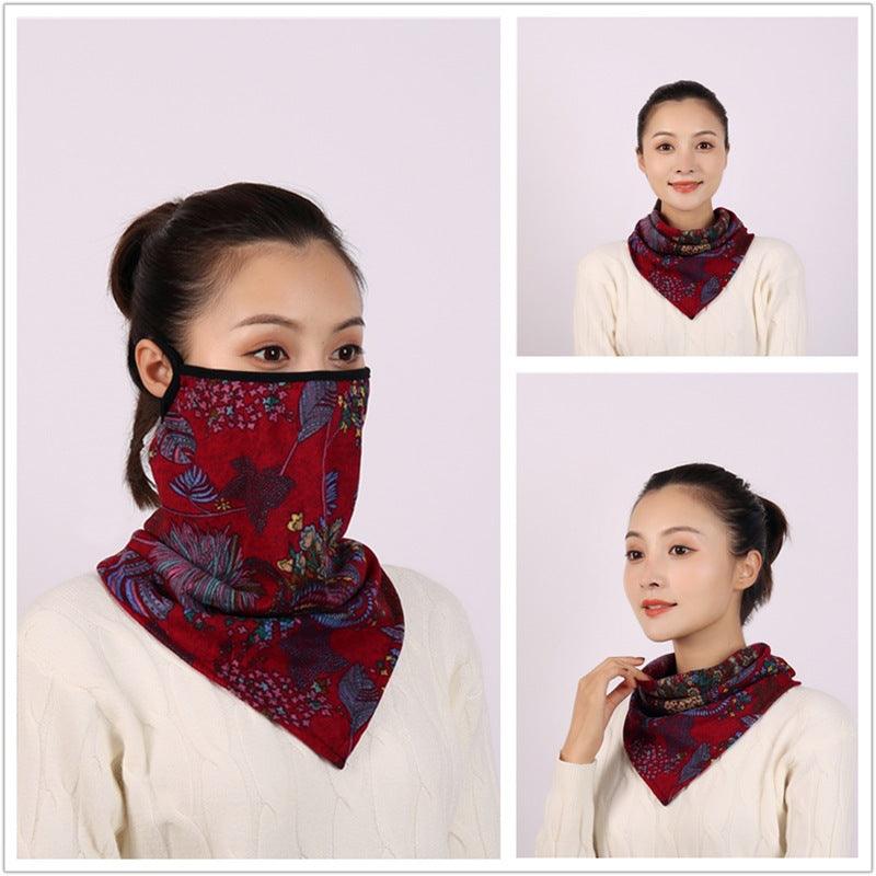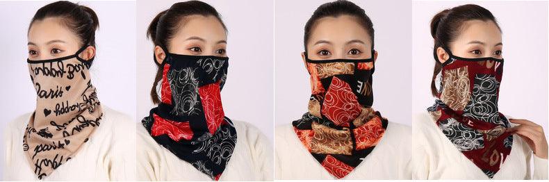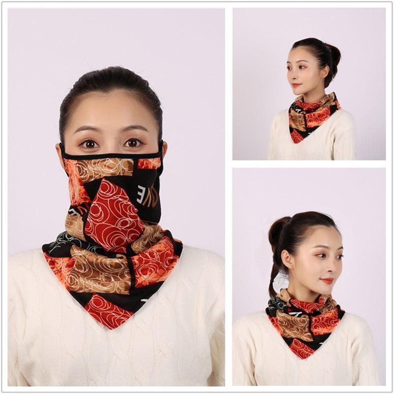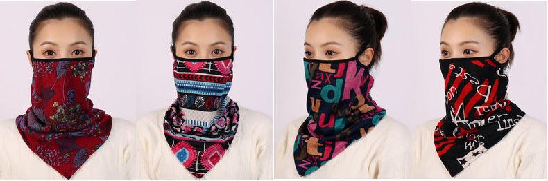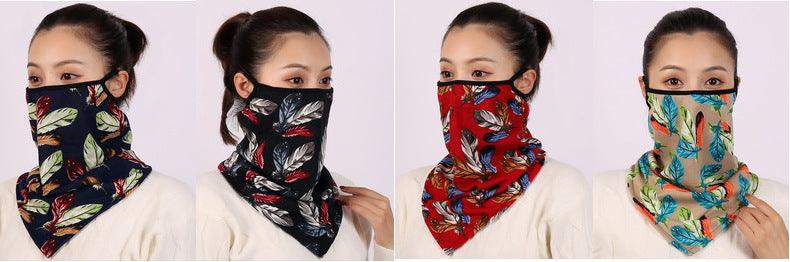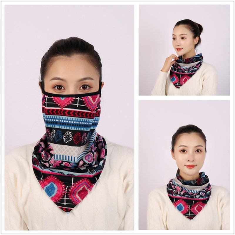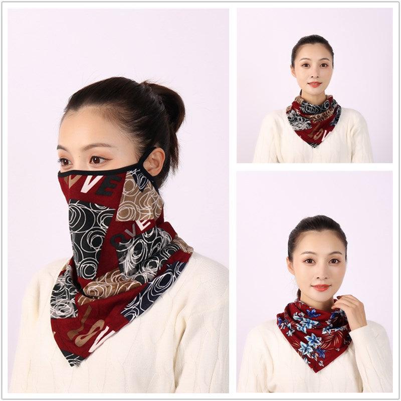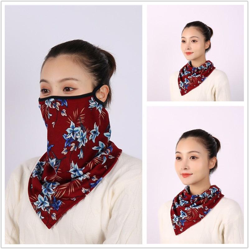Cotton Women Mask Scarf Face Mascarillas Wraps Floral Print Lady Warm Neck Scarves Foulard Bandana Reusable Outdoor Riding Masks Scarf Neck Gaiter Headwear Headband Head Wrap Scarf Mask Neck Ear Warmers Headbands Perfect Bandana